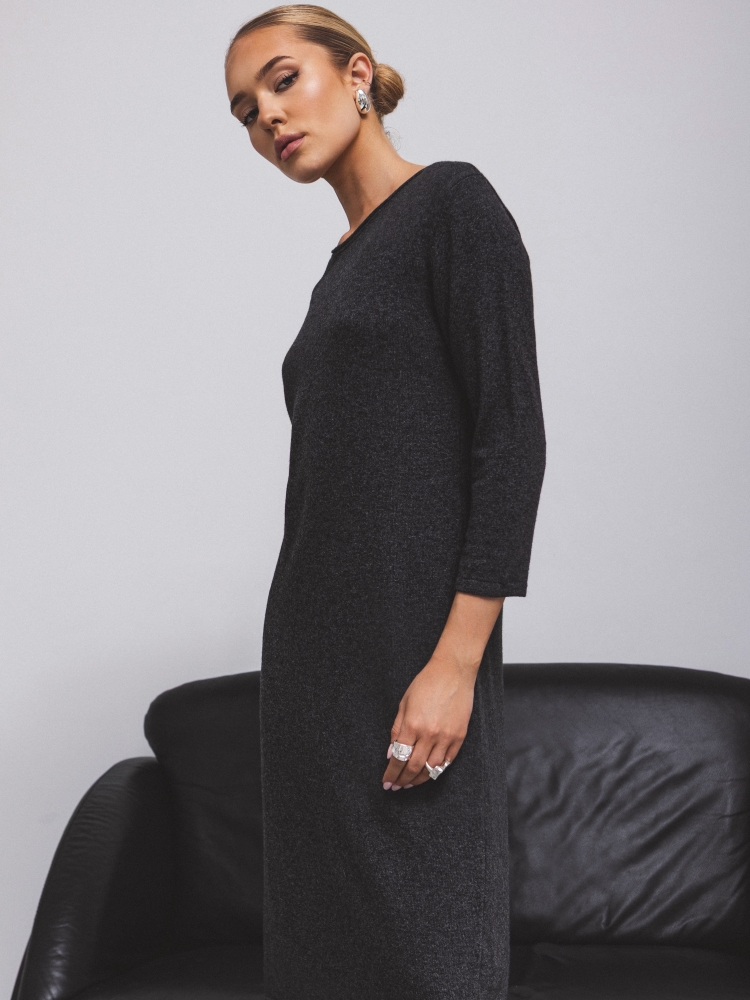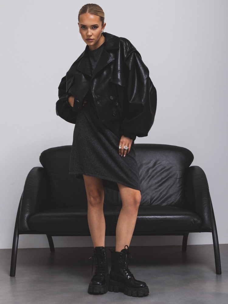 The unique Amalia sweater dress, crafted from high-quality fabric, is a perfect addition to autumn and winter outfits. The above-the-knee length is suitable for both everyday wear and more formal occasions. Made in Poland. Manufacturer: Cocomore.