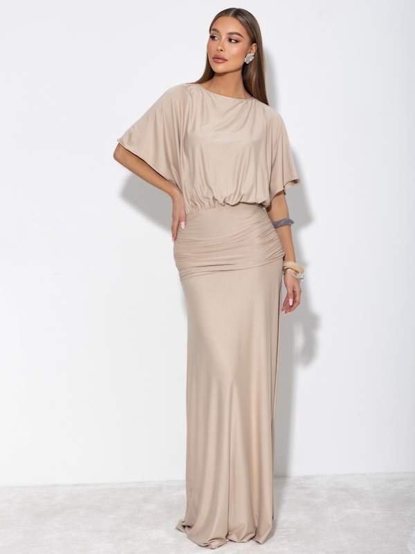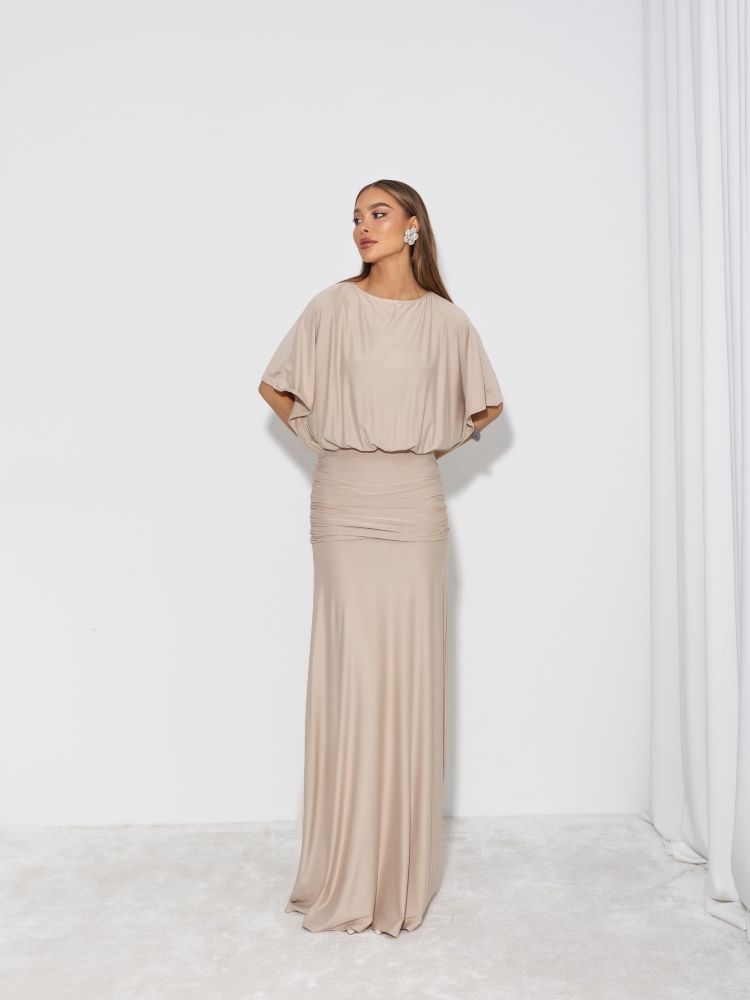 The Mabella dress is a viscose dress with a touch of elastane in a maxi length. The loosely cut, batwing-cut top is balanced by a wide elastic waistband, accentuating the silhouette. A flared skirt completes the lower section for comfort. Made in Poland by Cocomore.