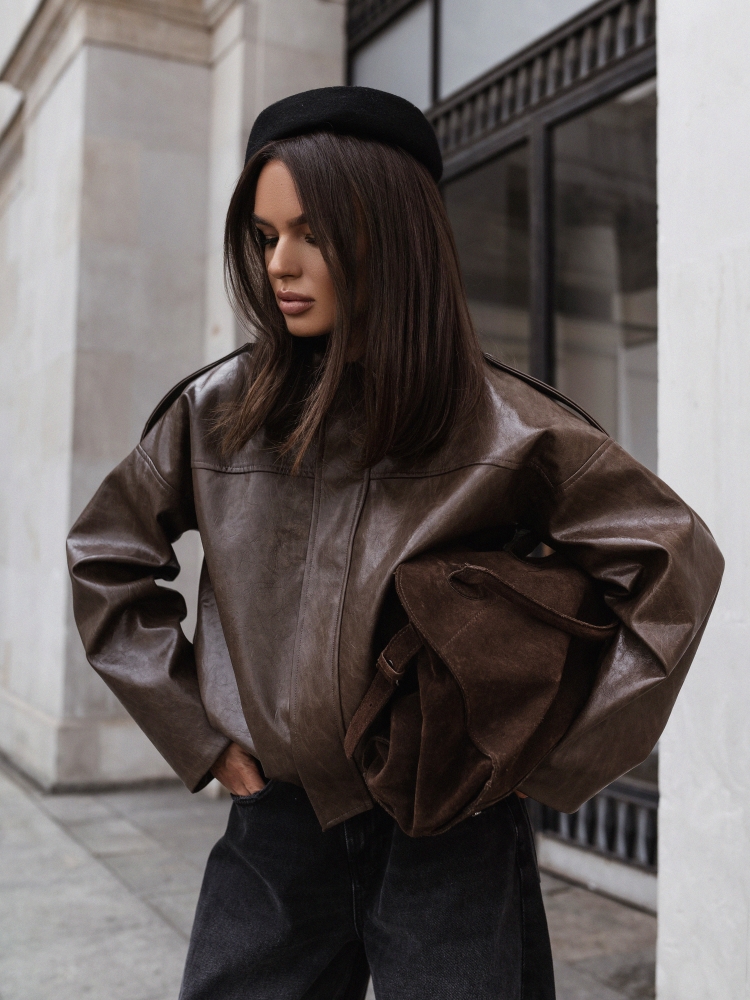 The Julia jacket is an elegant biker jacket made of high-quality eco-leather. It fastens with a practical zipper. The front is adorned with decorative stitching, and the shoulders are decorated with decorative epaulets. Polish manufacturer: Cocomore.