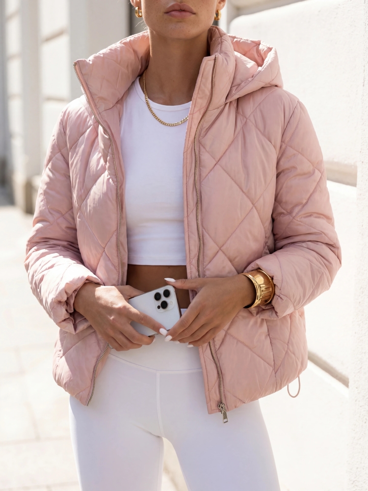 A unique Maudera jacket, made of high-quality material. The asymmetrical, loose cut ensures comfort and convenience while visually elongating the figure. Roomy side pockets are located. It fastens with a contrasting zipper. An additional advantage is the spacious hood and adjustable elastic bands on the sides. Made in Poland. Manufacturer: Cocomore. Product presentation uses AI visualizations.