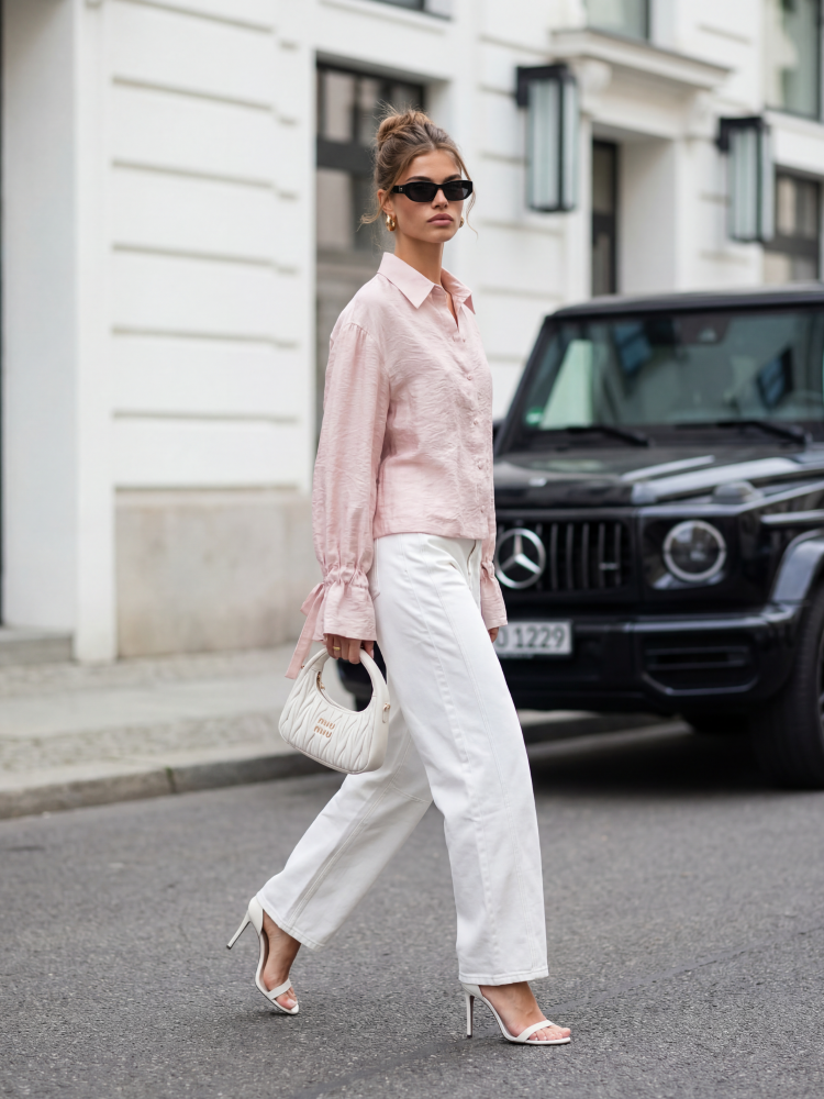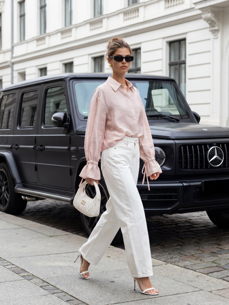 The Trudie shirt is crafted with meticulous attention to detail. Its loose fit ensures comfort and versatile wear. Wide sleeves are balanced by cuffs that can be tied to your liking. Polish manufacturer Cocomore. The product presentation uses AI visualizations.