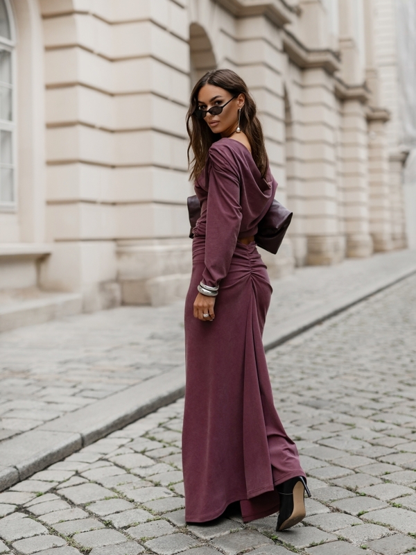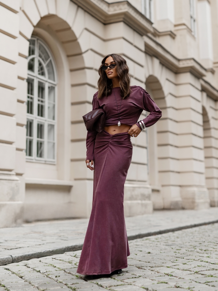 The unique Lawton skirt, crafted from high-quality fabric, pairs beautifully with the blouse of the same name. The trapezoidal, flared cut is balanced by a drawstring waist. Ruching at the front and back enhances the look. Made by Polish manufacturer Cocomore.