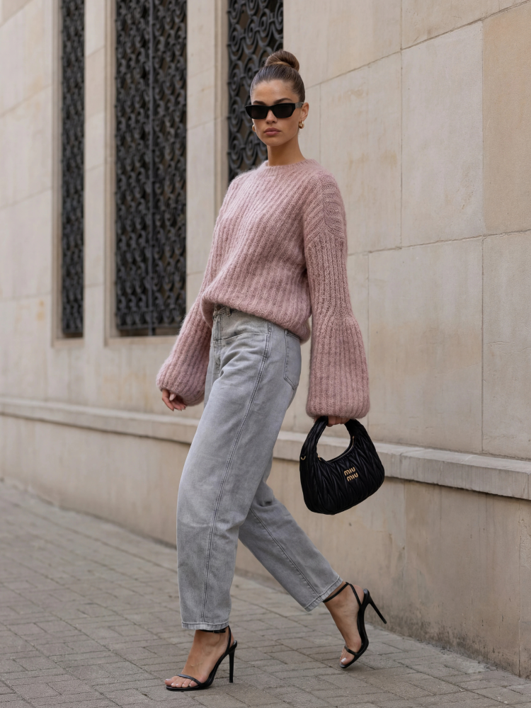 A brilliant Cornelius sweater, made of thick, fleshy yarn. The short cut is emphasized by the drawstring located at the very bottom. Its characteristic element are flared sleeves, which give it a unique look. Polish producer Yarn. Product presentation uses AI visualizations.