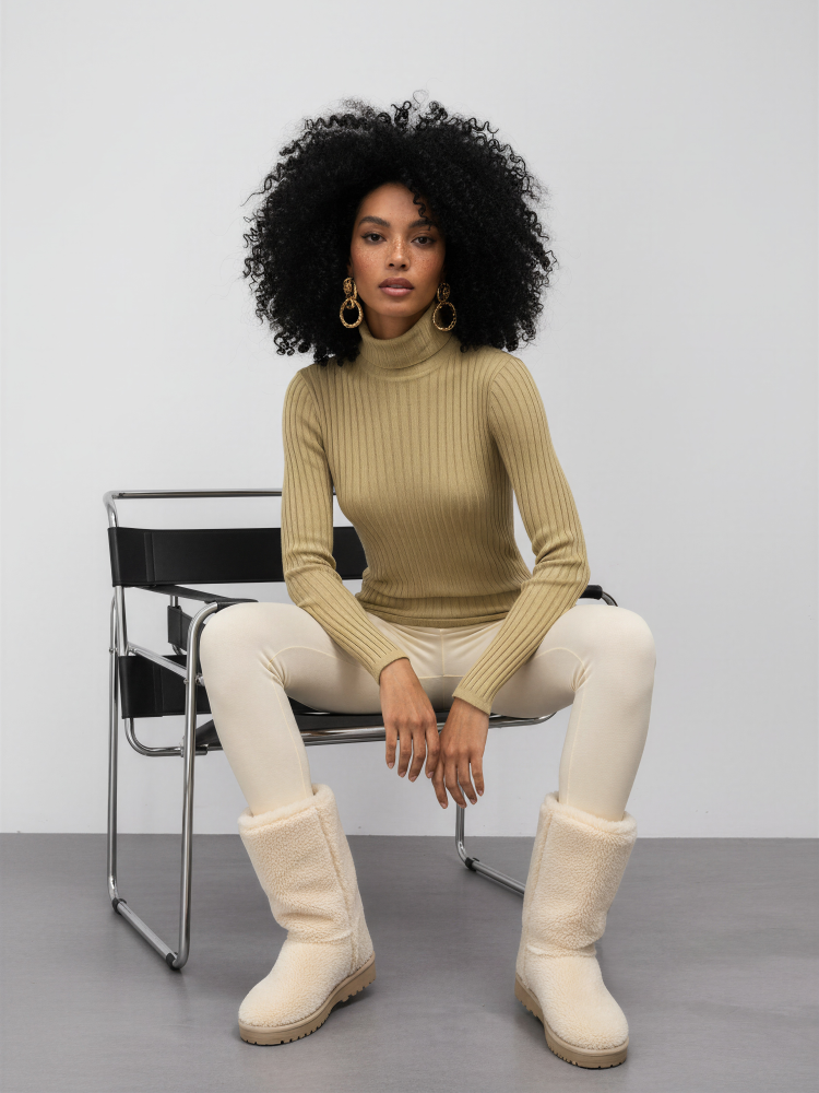 Universal, ribbed Eilson Golf sweater, made of high-quality yarn. It will serve as a great base for many styles. It is ultra nice and does not cause allergic reactions. Producer Cocomore.