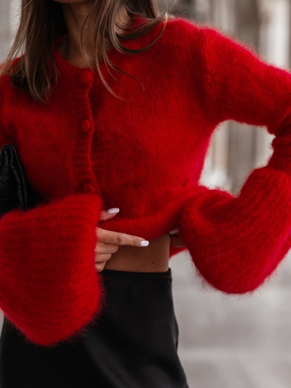 This fantastic Frank sweater, cut like a short cardigan, is made of high-quality yarn. It fastens with buttons, allowing for a variety of styling options. Puffed sleeves add a unique touch. Made by Polish manufacturer Yarn Studio.