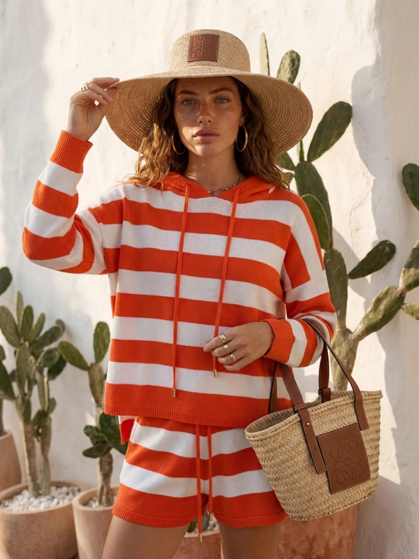 A fantastic, striped Galdar sweater. The loose fit ensures comfort and convenience. A wide hood is located at the back. It can be worn with pants or on its own, allowing for a wide range of styling options. Made in Poland. Product presentation uses AI visualizations.