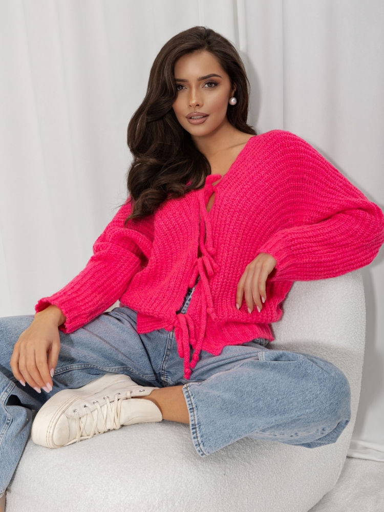 The Grover sweater is a timeless, cropped design adorned with ties at the front. Its feminine V-neckline and ribbed trims accentuate the figure. It will be a perfect addition to any outfit in the upcoming season. From the Polish manufacturer Cocomore.
