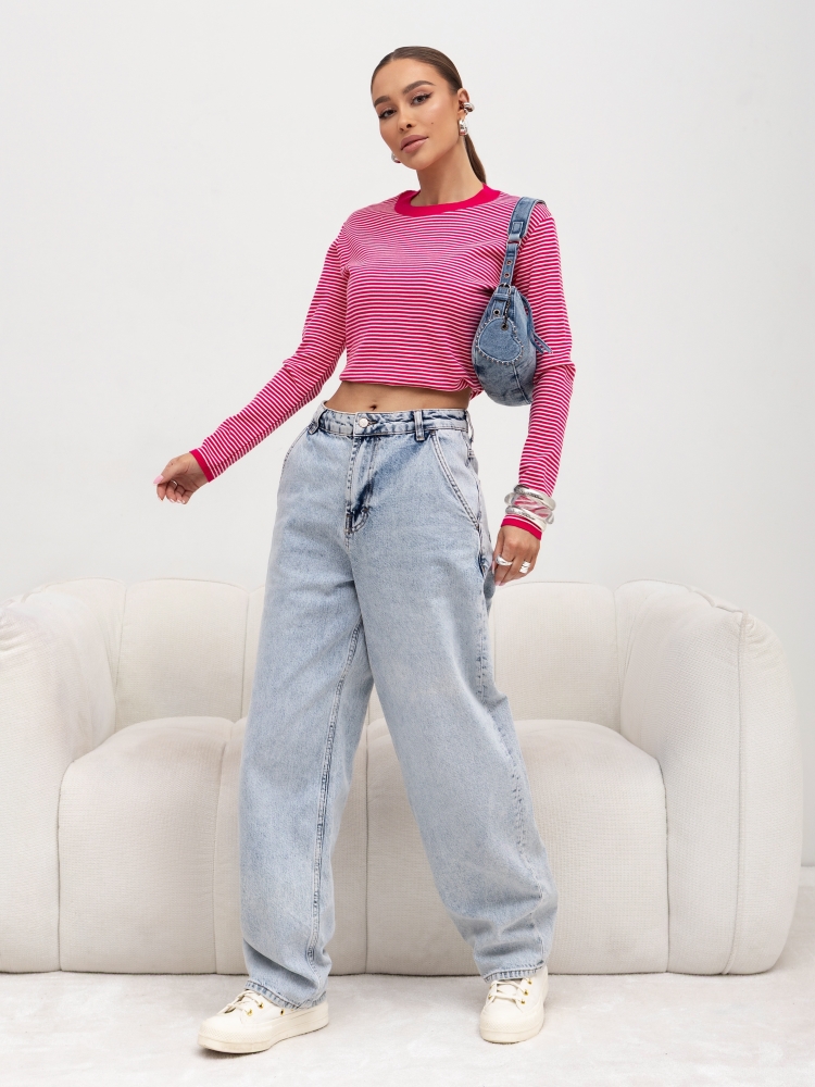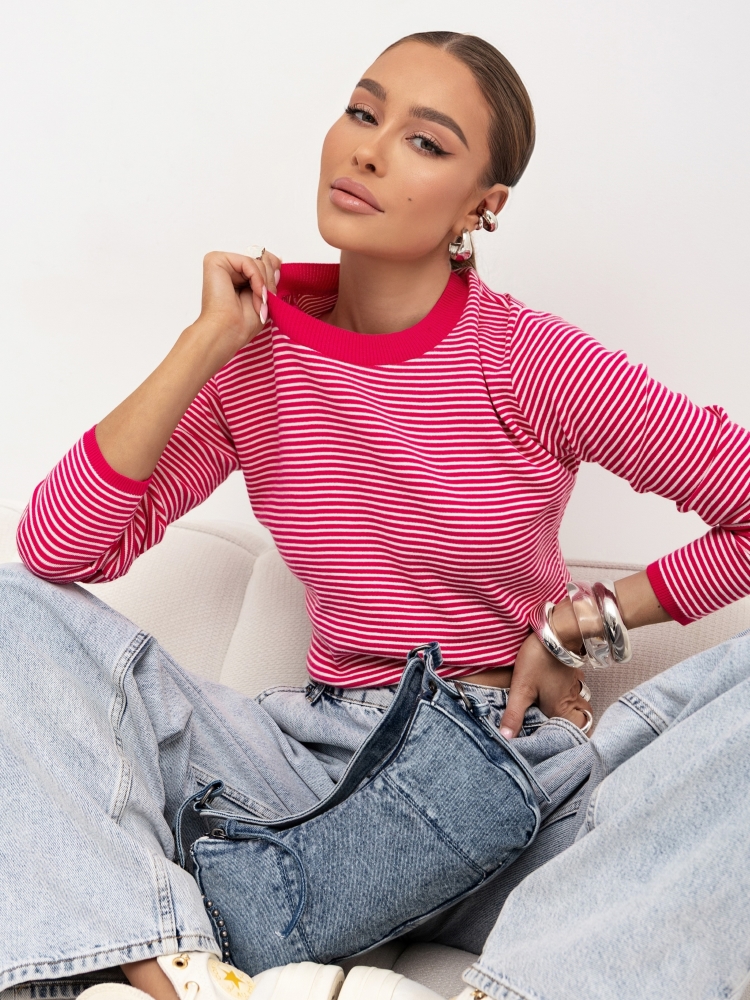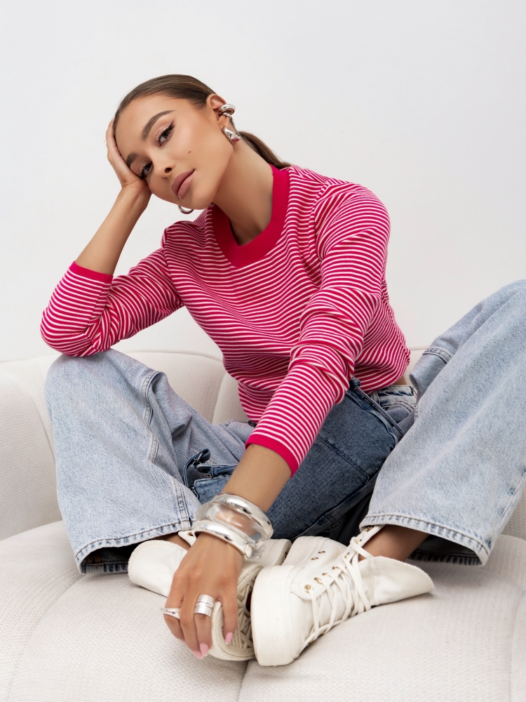 The timeless Ivans sweater with a striped print is a great alternative to classic blouses. Ribbed cuffs ensure a perfect fit. A subtle manufacturer's logo on the side completes the look. Made in Poland by Cocomore.