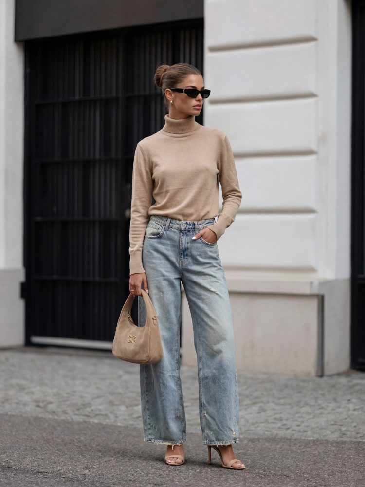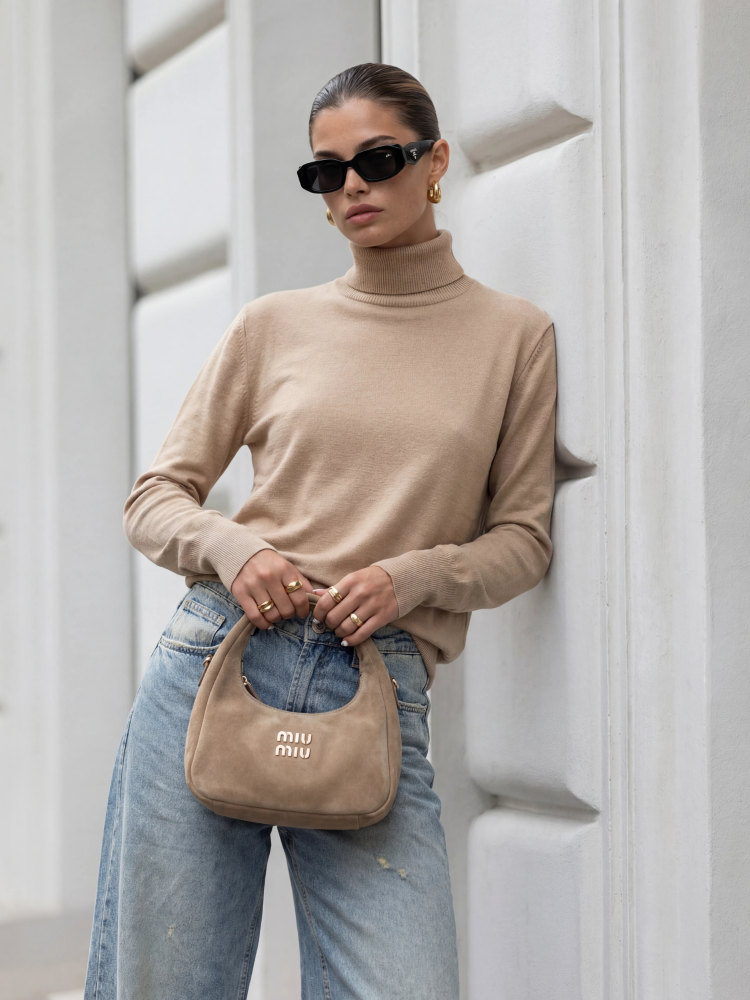 The versatile Larid turtleneck is a must-have in every wardrobe. Its classic cut will complement any outfit. A patch with the manufacturer's logo adorns the side. Practical drawstrings add to the trim. Made by Polish manufacturer Cocomore. The product presentation features AI-generated visuals.