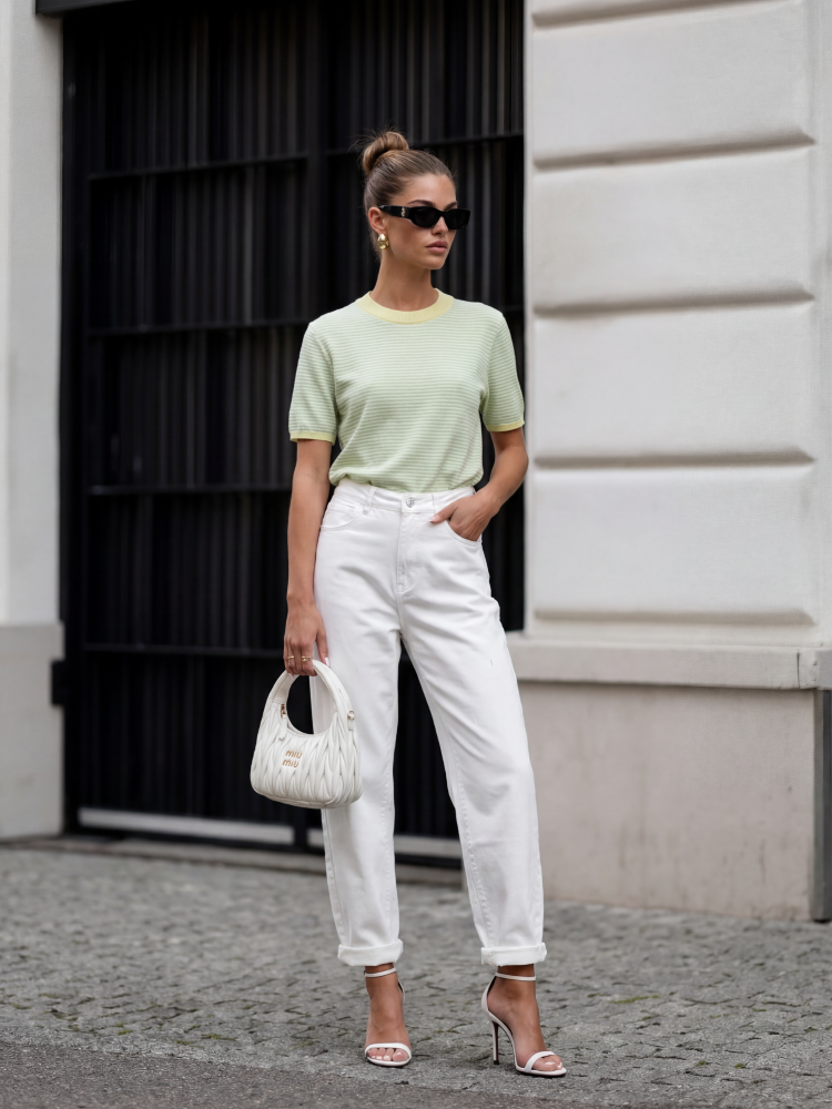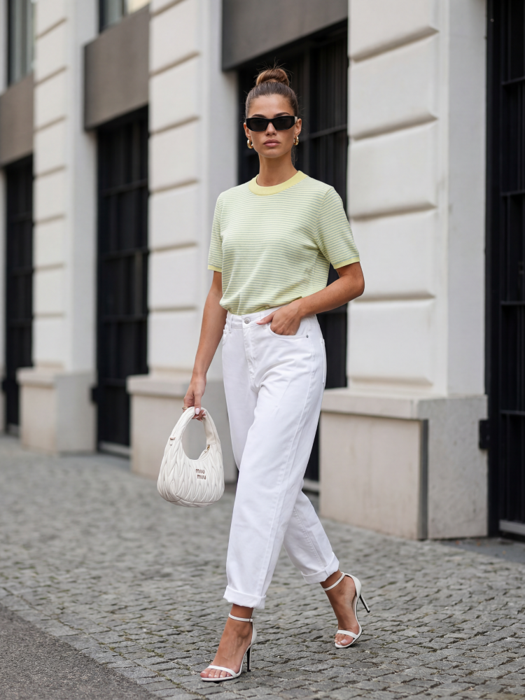 The timeless Marko sweater with a striped print is a great alternative to classic blouses. Shoulder pads and ribbed cuffs ensure a perfect fit. A subtle brand logo on the side completes the look. Polish manufacturer Cocomore. The product presentation uses AI visualizations.