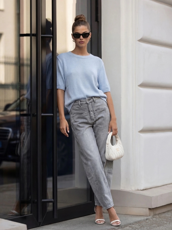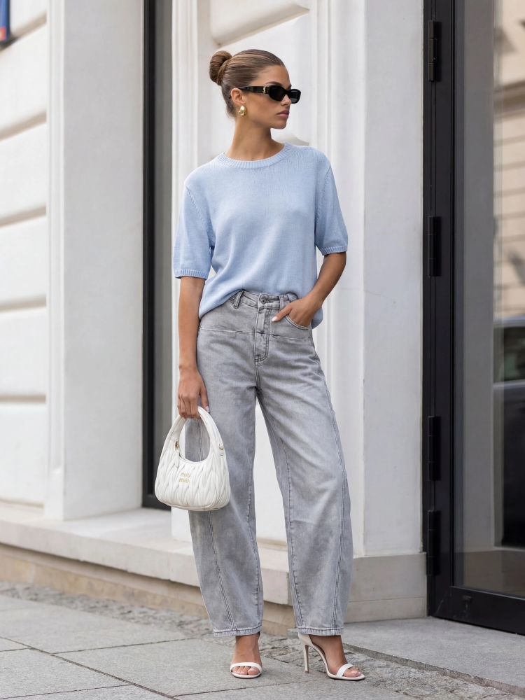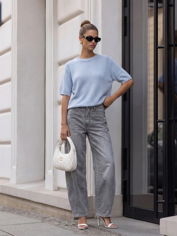 The basic Nanette sweater is a perfect choice for the upcoming season. It successfully replaces a T-shirt and enhances your outfit. The loose fit and ribbed cuffs ensure comfort. Made by Polish manufacturer Cocomore. The product presentation uses AI visualizations.
