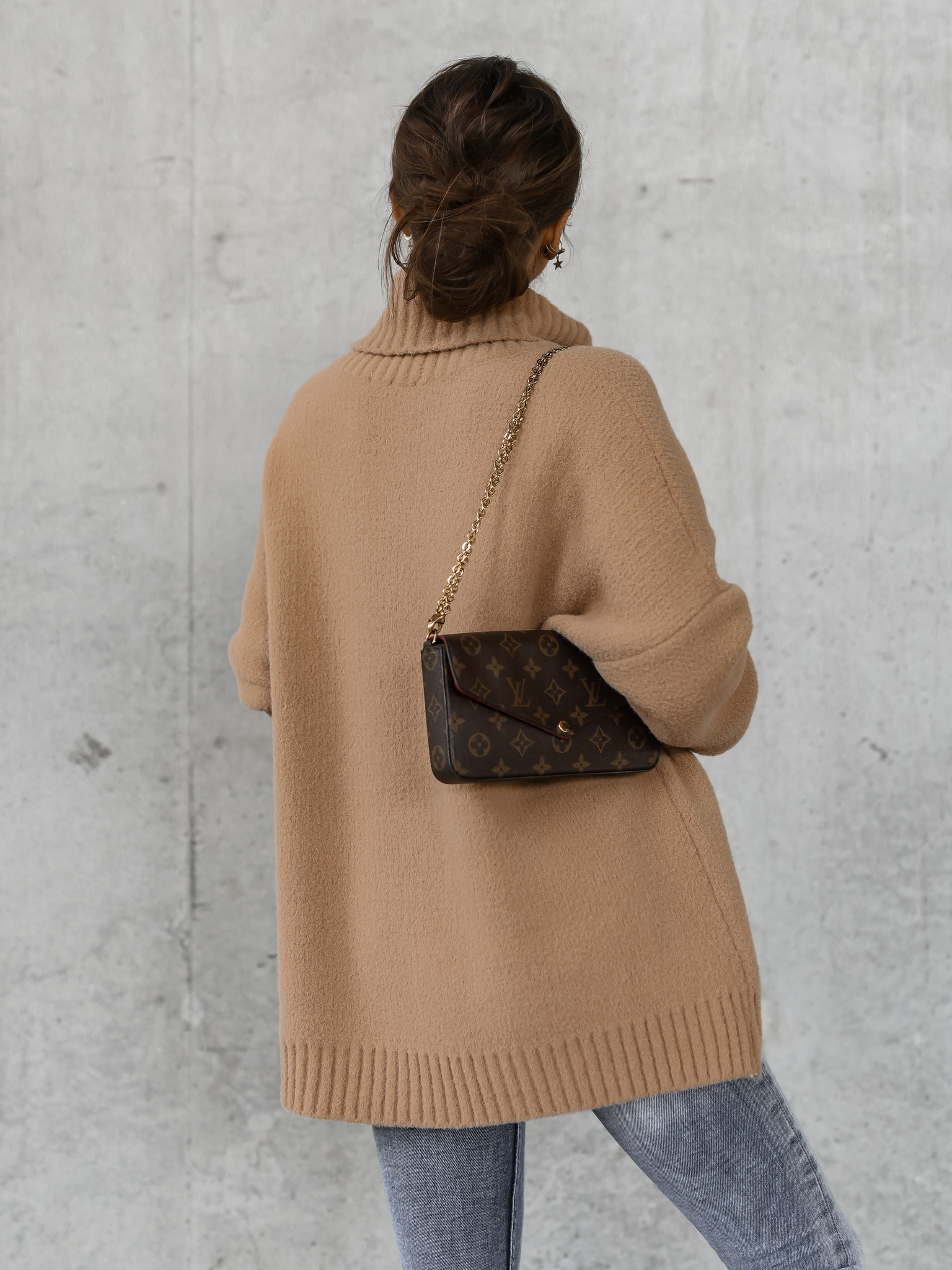 Ultra pleasant to the touch, fleshy Odelia sweater with a wide cut, made of high quality yarn. There is a practical turtleneck at the top. It will perfectly complement autumn and winter stylizations. Made in Poland.