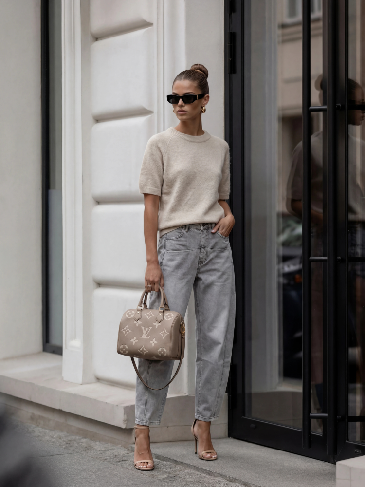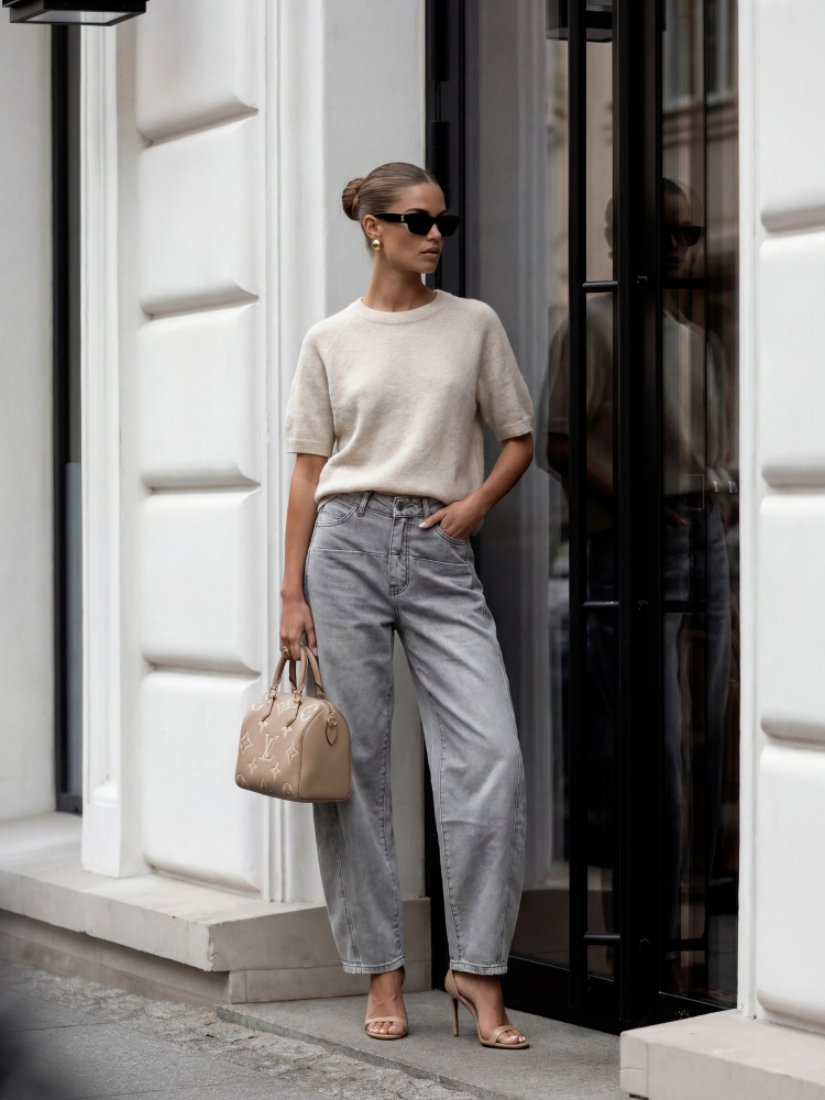 The basic Romeos sweater is a perfect choice for the upcoming season. It successfully replaces a T-shirt and enhances your outfit. The loose fit and ribbed cuffs ensure comfort. Made in Poland by Cocomore. The product presentation uses AI visualizations.