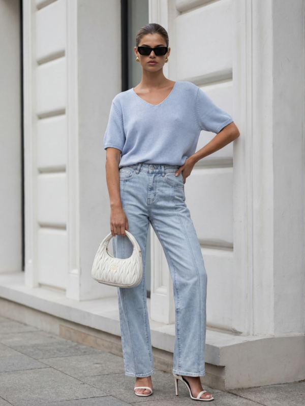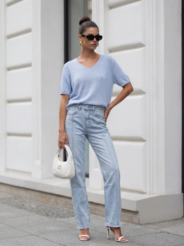 The basic Walter sweater is a perfect choice for the upcoming season. It successfully replaces a T-shirt and enhances your outfit. The loose fit and ribbed trims ensure comfort. Made by Polish manufacturer Cocomore. The product presentation uses AI visualizations.