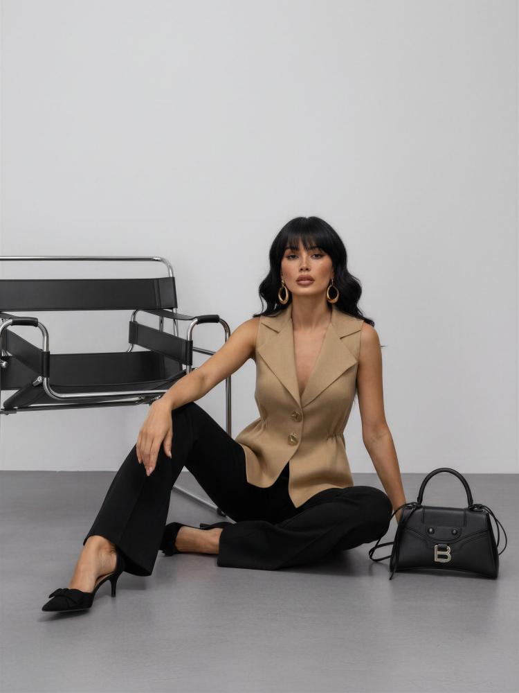 The Delphina vest is a fashionable wardrobe staple that will add character to any outfit. Crafted from high-quality yarn, it fastens with decorative double-breasted buttons. Its simple cut is offset by ruching at the sides. Made in Poland by Cocomore.