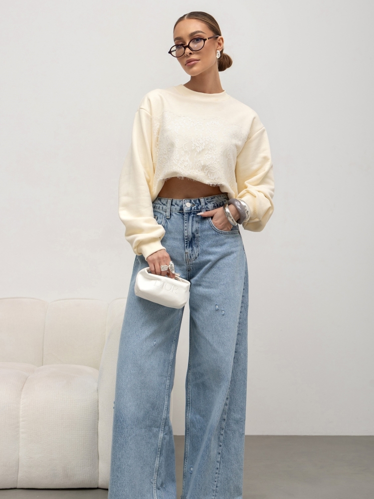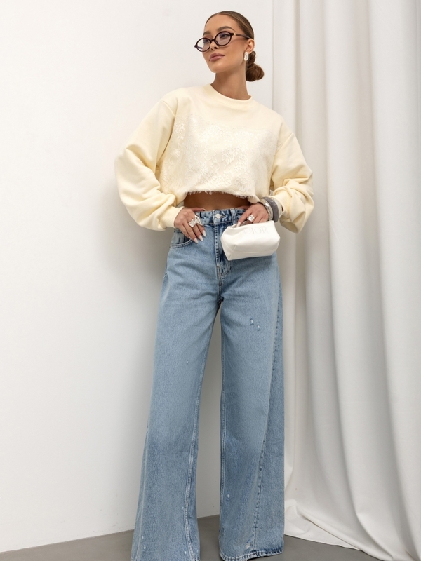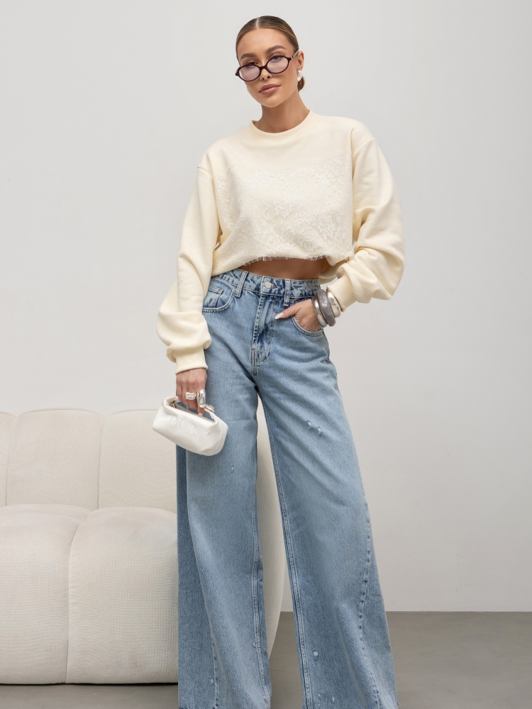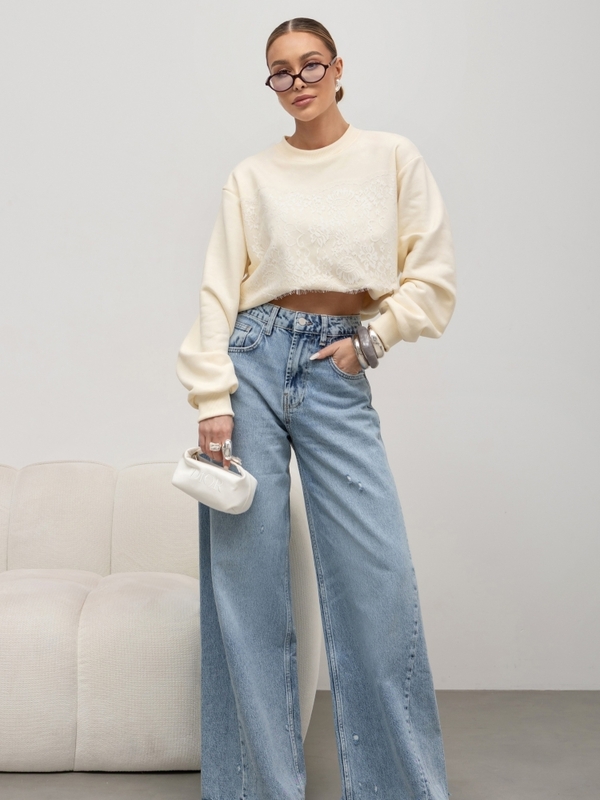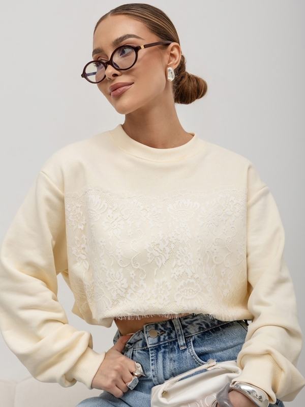 The modern Lilianna sweatshirt features a comfortable, oversized fit made of high-quality cotton with a touch of elastane. A contrasting stripe adorns the front. Ribbed cuffs and a classic round neckline complete the look. Polish manufacturer: Cocomore.