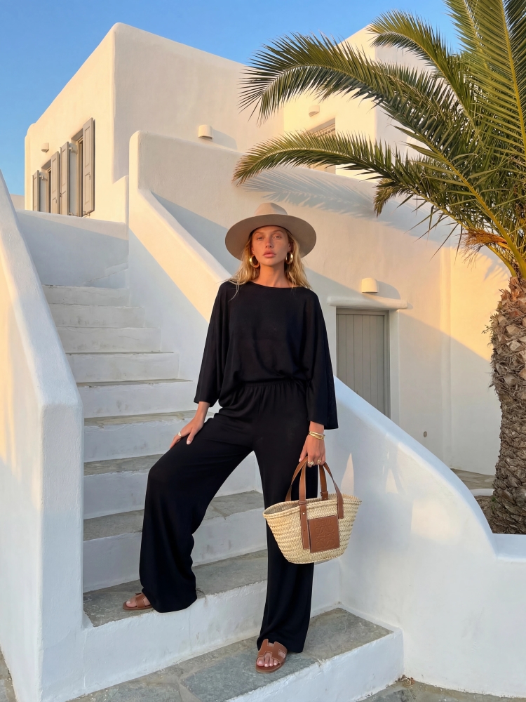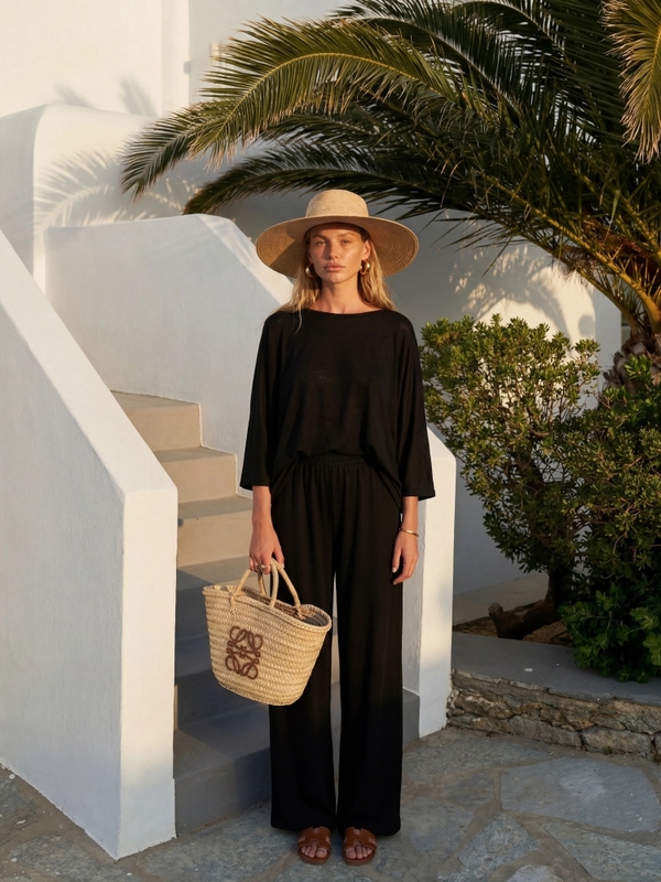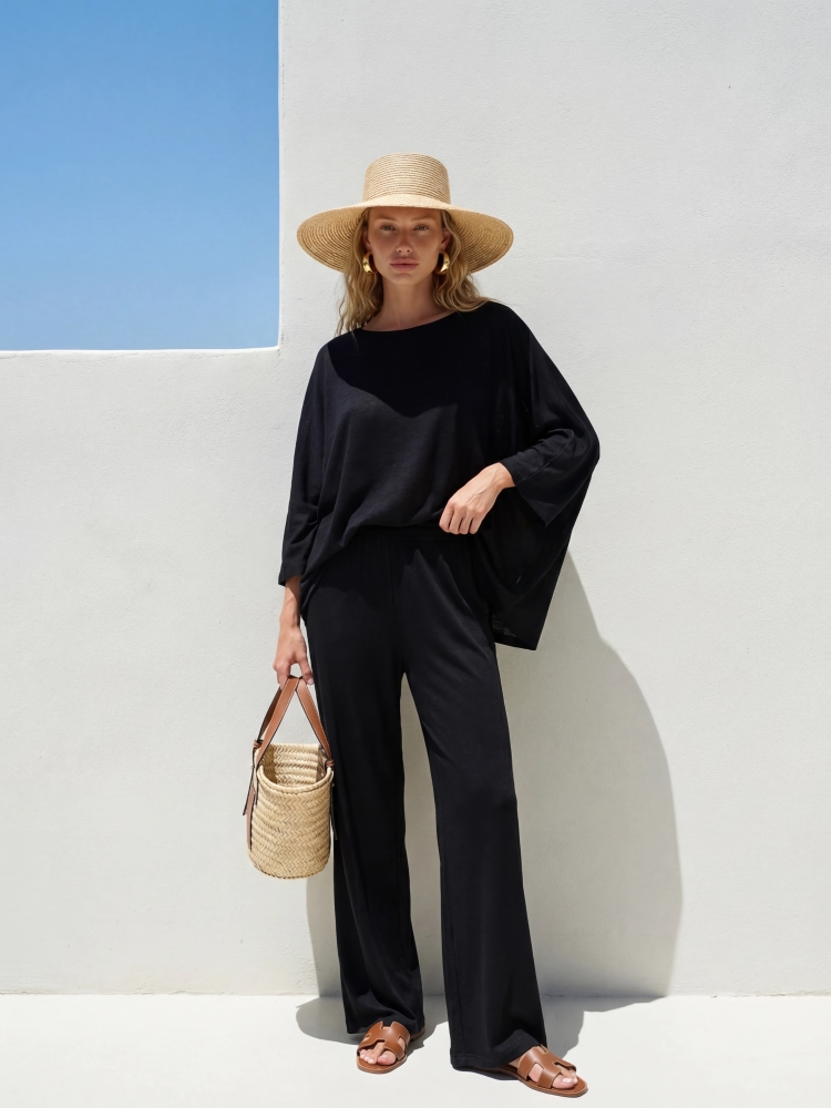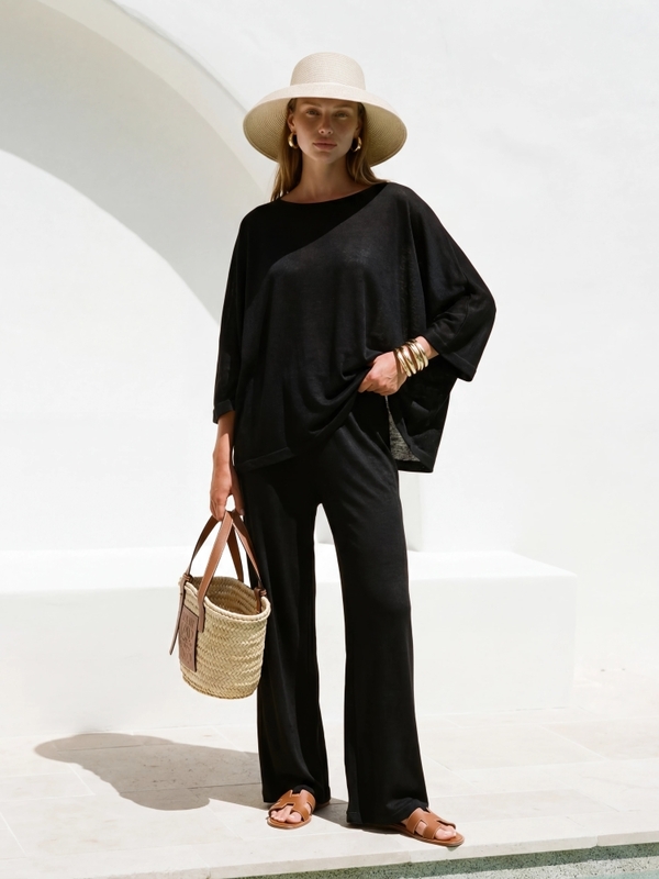 The loosely cut Aertia blouse, made of high-quality, semi-sheer fabric, looks great paired with trousers or a skirt of the same name. From the Polish manufacturer Cocomore. The product presentation uses AI visualizations.