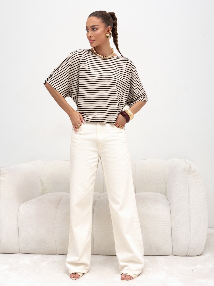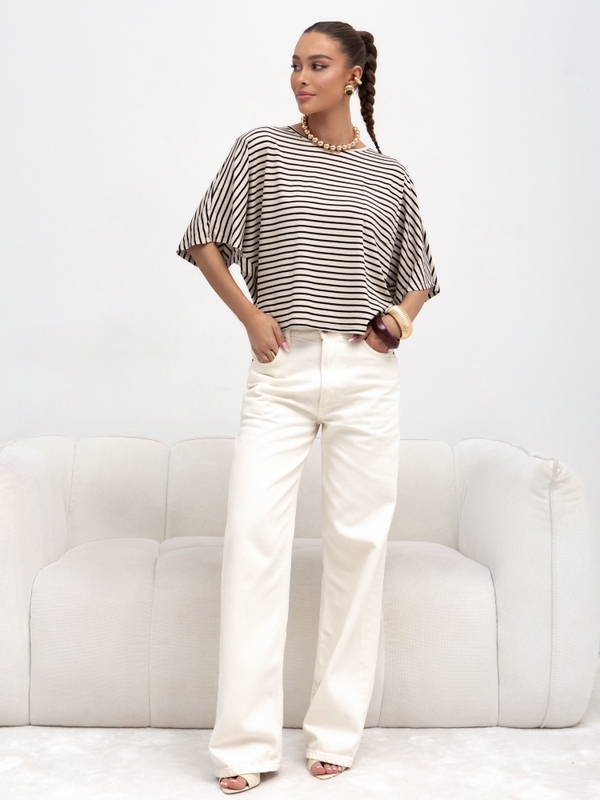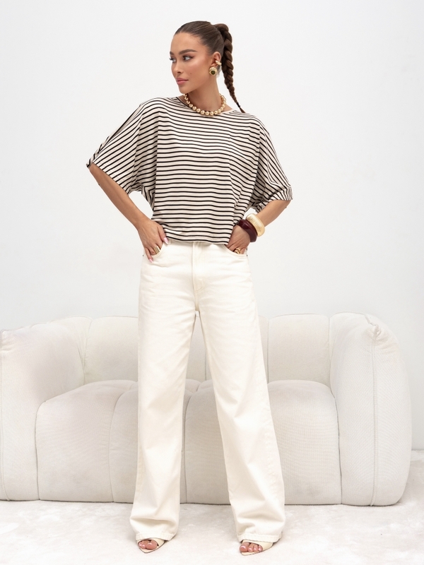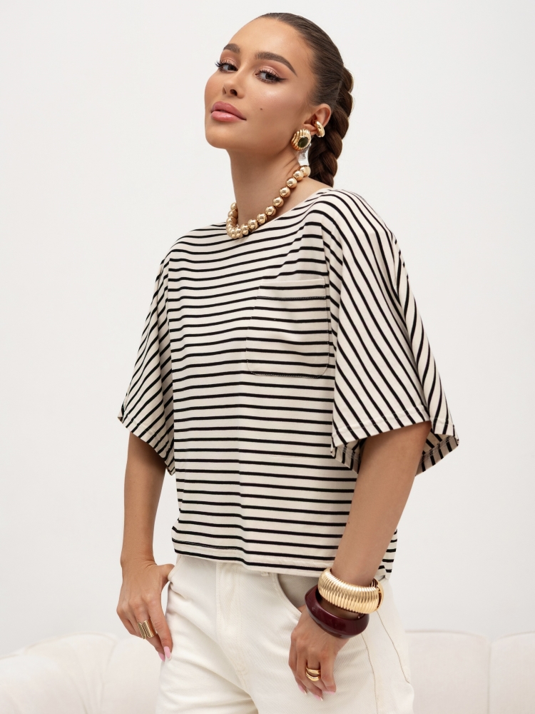 A modern, loose-fitting Dessi T-shirt made of high-quality fabric. The classic design is enhanced by padded shoulders and a practical front pocket. A unique foundation for everyday styling. Made in Poland. Produced by Cocomore.