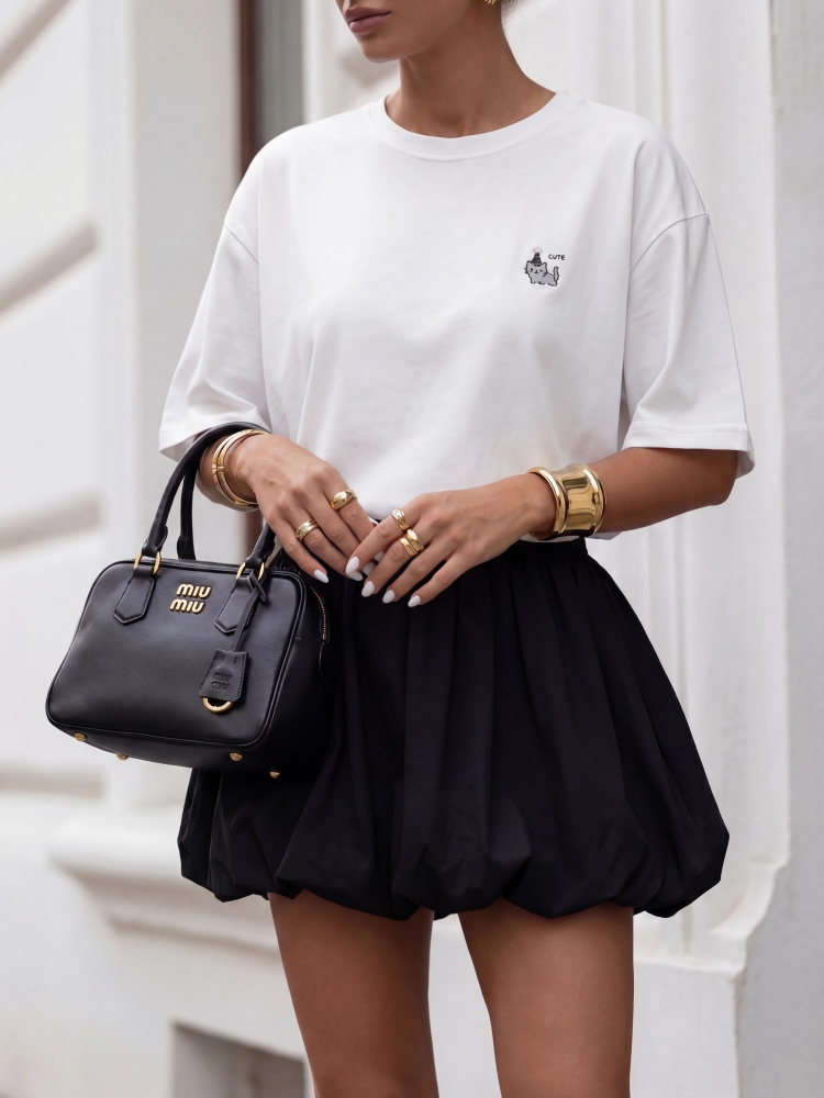 The Kander T-shirt features a loose fit. Made of high-quality cotton with a touch of rayon, it features a colorful appliqué on the front. This imported product is presented using AI visualizations.
