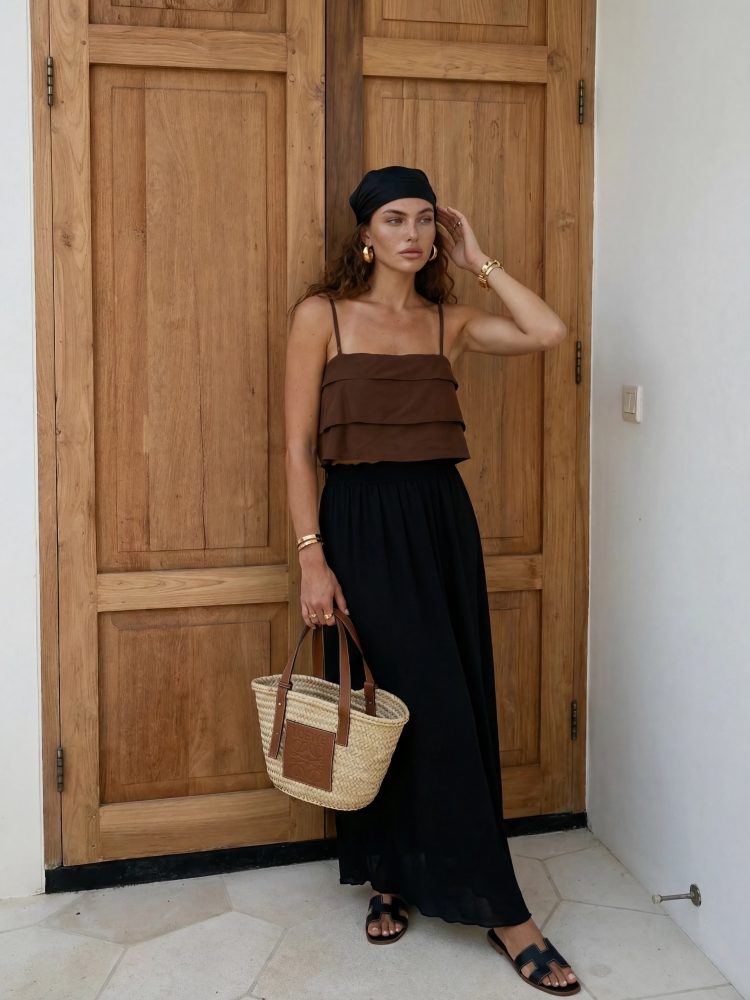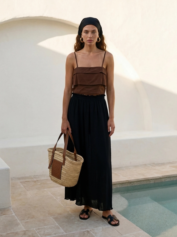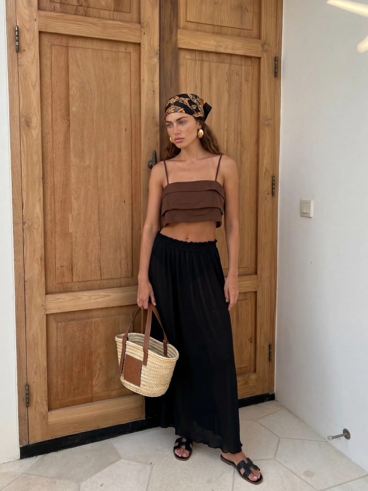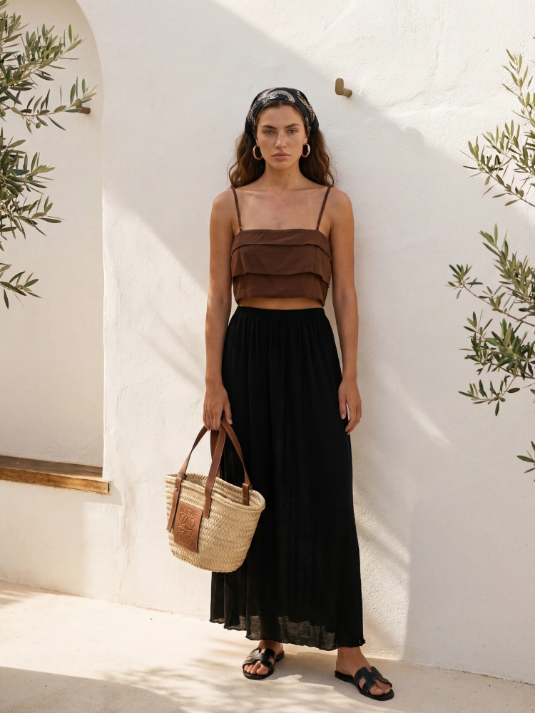 The fantastic Tiberius top is a great alternative to a classic blouse. Adjustable straps ensure a perfect fit. Additionally, it features a side zipper closure. Polish manufacturer Cocomore. The product presentation uses AI visualizations.