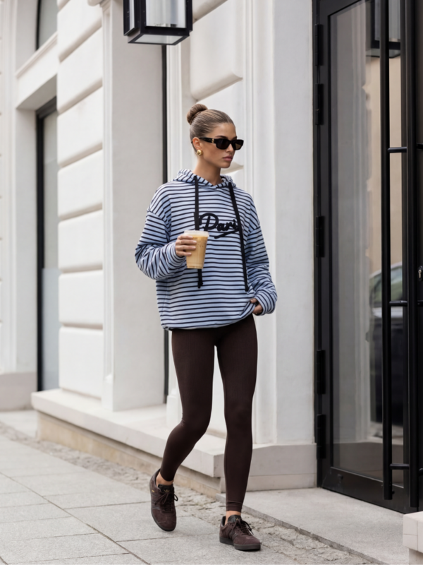 Praktyczna, luźna bluza Eadie , wykonana z wysokiej jakości dresowego materiału. Przód zdobi efektowna, haftowana aplikacja. Dodatkowo, na wykończeniach znajdują się ściągacze i praktyczny kaptur z troczkami. Całość dopełnia klasyczny okrągły dekolt i opuszczona linia ramion. Polski producent Cocomore. Prezentacja produktu wykorzystuje wizualizacje AI.