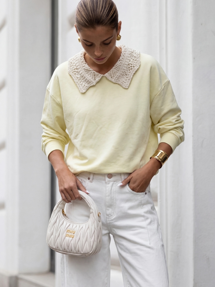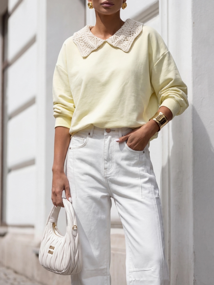 Stylowa bluza Freya , wykonana z wysokiej jakości materiału. Oversize'owy krój zapewni wiele możliwości wystylizowania. Ściągacze na wykończeniach dodają jej praktyczności. Idealna jako dopełnienie codziennych stylizacji. Niezwykłego uroku dodaje jej kontrastujący, koronkowy kołnierzyk. Polski producent Cocomore. Prezentacja produktu wykorzystuje wizualizacje AI.