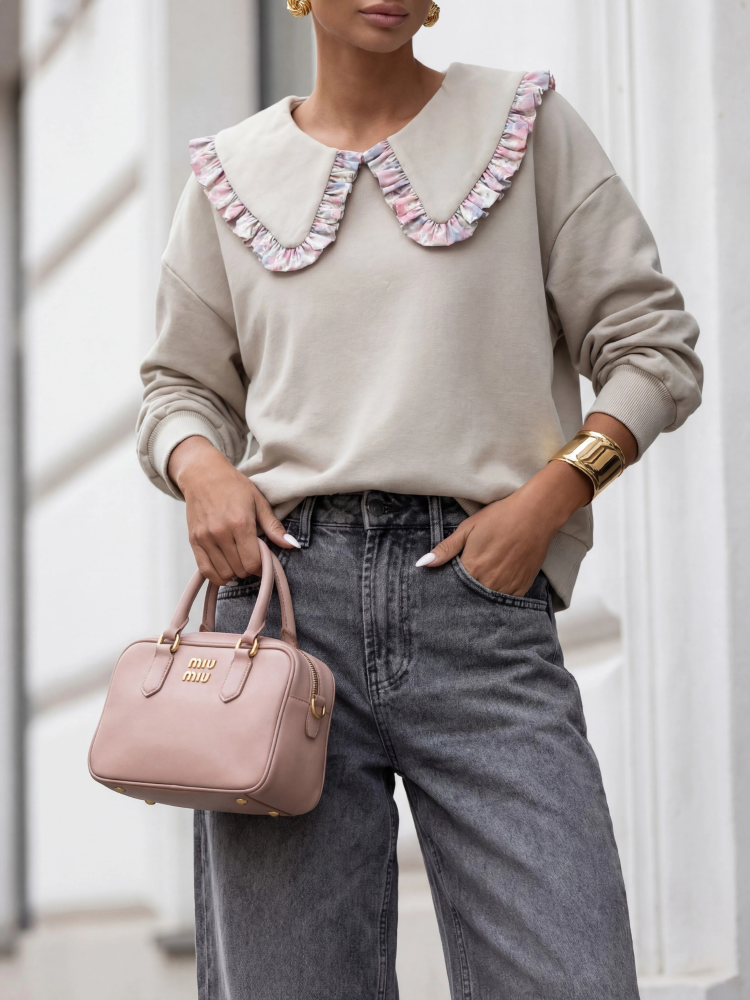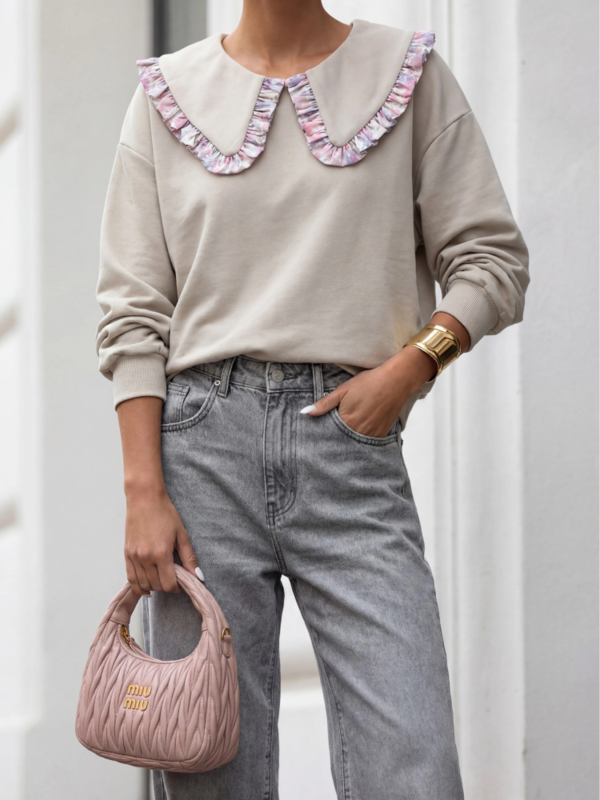 Bluza Zuleya to ponadczasowy model o oversize'owym kroju. Praktyczności dodają jej praktyczne ściągacze na wykończeniach. Wyjątkowego uroku dodaje jej szeroki kołnierz, wykończony kontrastującym lampasem. Znakomicie uzupełni stylizację w nadchodzącym sezonie. Polski producent Cocomore. Prezentacja produktu wykorzystuje wizualizacje AI.