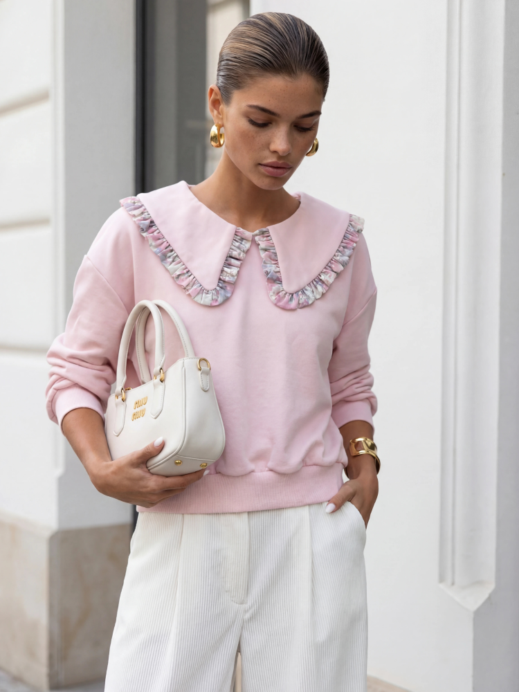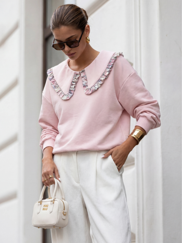 Bluza Zuleya to ponadczasowy model o oversize'owym kroju. Praktyczności dodają jej praktyczne ściągacze na wykończeniach. Wyjątkowego uroku dodaje jej szeroki kołnierz, wykończony kontrastującym lampasem. Znakomicie uzupełni stylizację w nadchodzącym sezonie. Polski producent Cocomore. Prezentacja produktu wykorzystuje wizualizacje AI.