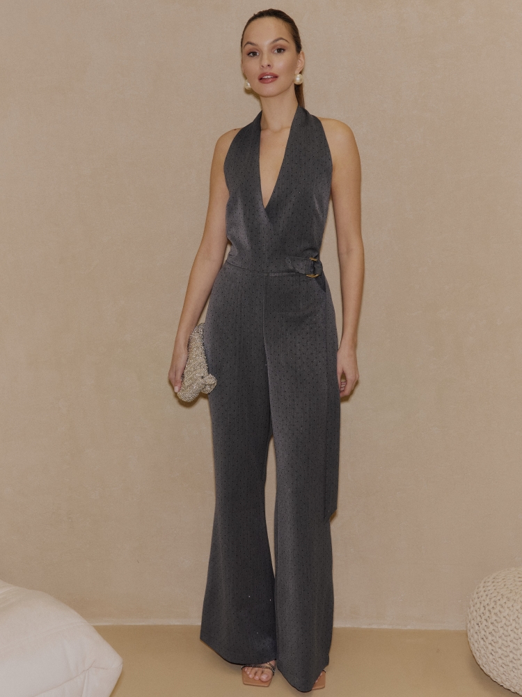 Zachwycający kombinezon Vermont, to propzycja która znakomicie sprawdzi się na każdą okazję. Materiał zdobią połyskujące dżety. Zapinany na plecach na ekspres oraz na karku na guziki. W talii znajduję się pasek z możliwością regulacji. Polski producent Cocomore.