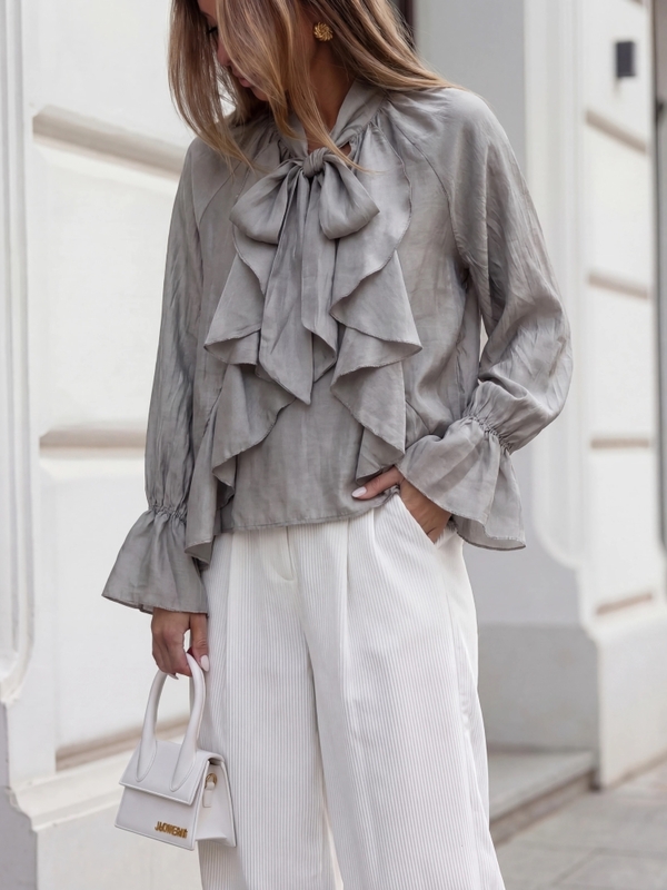 Wyjątkowa koszula Danica , wykonana została z wysokiej jakości półprzezroczystego materiału. Luźny krój zapewni komfort podczas noszenia. Dodatkowo, V-dekolt został uzupełniony wiązaniem, które możemy dopasować do własnych potrzeb. Szyuk i elegancji dodają falbany zdobiące przód oraz rękawy wykończone ściągaczami. Polski producent Cocomore. Prezentacja produktu wykorzystuje wizualizacje AI.