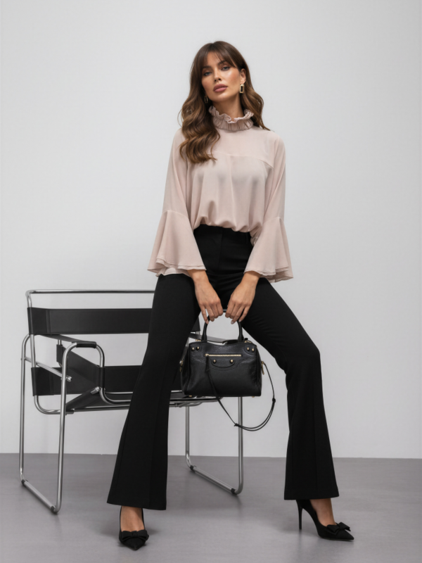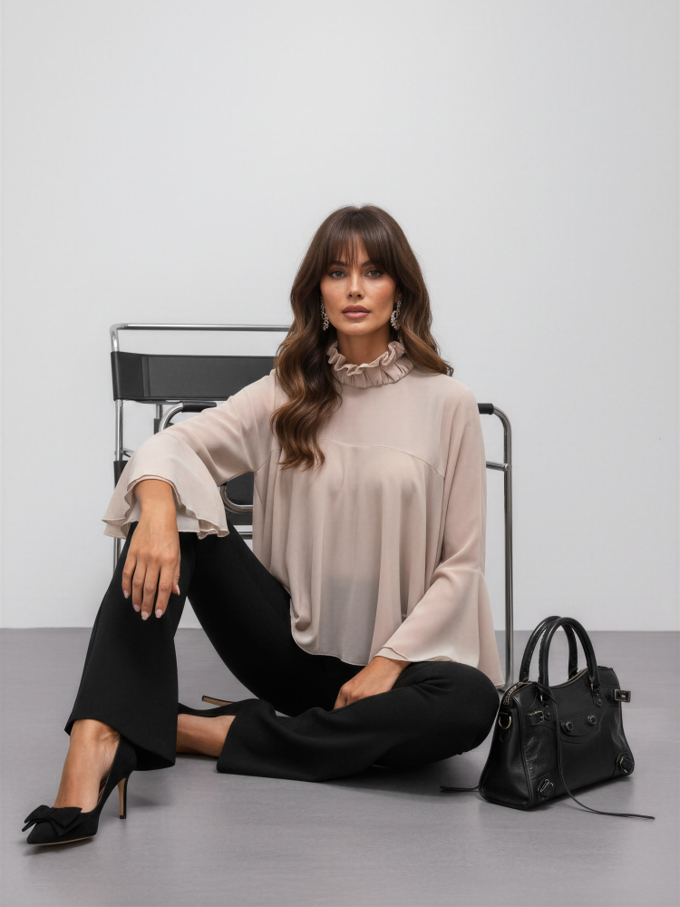 Fantastyczna koszula Dinah, wykonana z półprzezroczystego materiału o kroju nietoperza. Stójka zdobiona falbanami dodaje jej niepowtarzalengo uroku. Tył zdobi subtelne rozcięcie zapinane na guizki. Polski producent Cocomore.