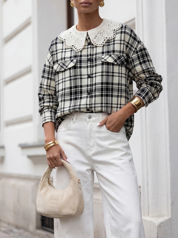 Koszula Dinelza Check Kremowa