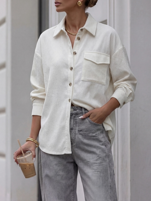 Genialna koszula Florence to model o luźno skrojonym kroju, który zapewni komfort noszenia i wiele możliwości wystylizowania. Całość dopełniają szerokie mankiety zapinane na dwurzędowe guziki. Przód zdobi kieszeń z klapą. Polski producent Cocomore. Prezentacja produktu wykorzystuje wizualizacje AI.