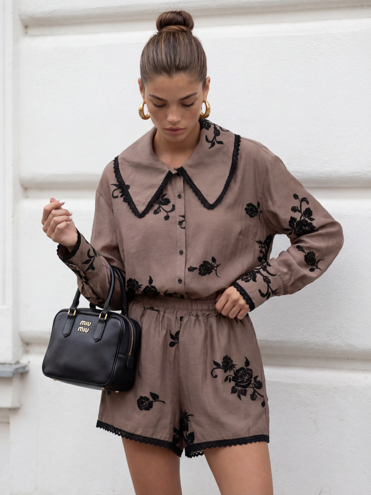 Fantastyczna koszula Hadleigh to model o oversize'owym kroju, który zapewni komfort noszenia i wiele możliwości wystylizowania. Całość dopełniają szerokie  mankiety zapinane na dwurzędowe guziki. Niepowtarzalnego uroku dodają jej haftowane wzory oraz koronkowy lampas zdobiący wykończenia. Znakomicie sprawdzi się w duecie ze spodenkami o tej samej nazwie. Polski producent Cocomore. Prezentacja produktu wykorzystuje wizualizacje AI.