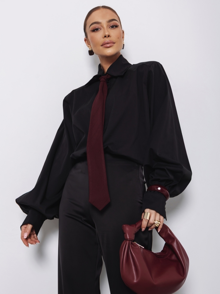 Koszula Nayla to model o rozszerzanym kroju z poduszkami na ramionach. Zapinana na guziki. Klasyczny krój gwarantuje idealny wygląd. Znakomicie sprawdzi się jako baza do wielu stylizacji, które możemy uzupełnić krawatem dołączonym do koszuli. Całość wieńczą bufiaste rękawy, wykończone mankietami zzapinanymi na dwurzędowe guziki.  Polski producent Cocomore.