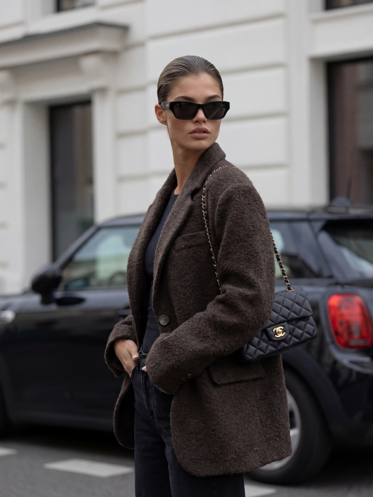 Marynarka Mildred to modna marynarka w stylu oversize z podszewką i poduszkami na ramionach. Jest zapinana na jeden guzik i posiada imitację kieszeni po bokach. Dodatkowo, na dole znajdują się rozcięcia, a rękawy są wykończone guzikami. Szeroki kołnierz dodaje jej uroku i oryginalności. To doskonały wybór dla osób ceniących modę i wygodę. Producent Cocomore.
