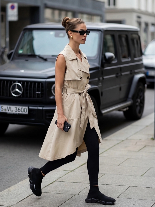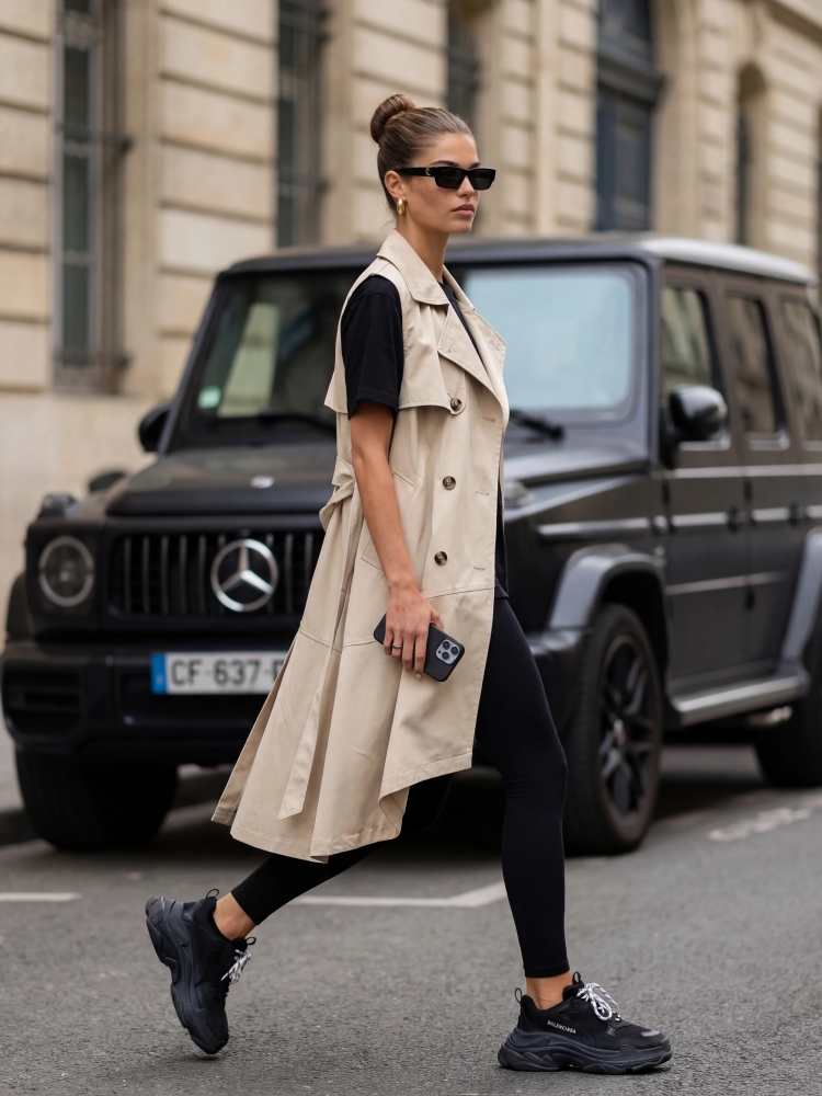 Wyjątkowa kamizelka Maury, to model o asymetrycznej długości, która optycznie wydłuży sylwetkę. Szeroki krój zapewni komfort noszenia, natomiast wiązanie w talii pozwoli na dopasowanie do sylwetki według własnych preferencji. Zapinana na efektowne, dwurzędowe guziki. Dodatkowo, po bokach znajdują się praktyczne kieszenie. Polski producent Cocomore.  Prezentacja produktu wykorzystuje wizualizacje AI.