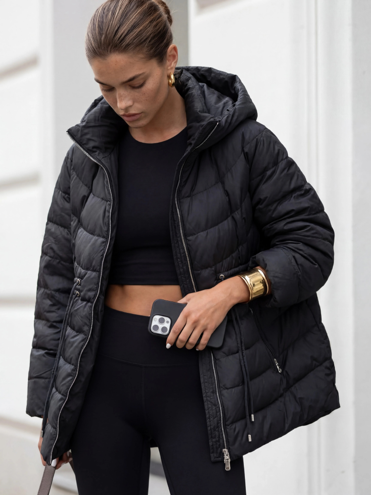 Nowoczesna kurtka Core, wykonana z wysokiej jakości materiału. Oversize'owy fason z pikowaniem zapewnia komfort i wygodę, jednocześnie optycznie wydłużając sylwetkę. Zapinana na kontrastujący ekspres, posiada obszerny kaptur, kieszenie oraz regulowany ściągacz w talii. Prezentacja produktu wykorzystuje wizualizacje AI.
