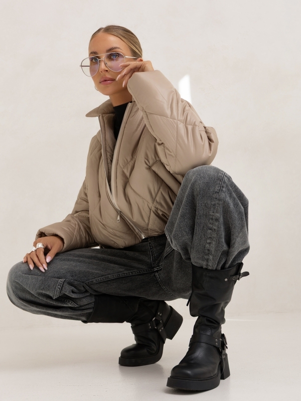 Kurtka Marina o kroju bomberki to nasza propozycja, która znakomicie sprawdzi się w tym sezonie. Wykonana z pikowanego materiału, ocieplonego watoliną. Po bokach znajduują się praktyczne kieszenie. Całość dopełnia szeroki kołnierzyk oraz podszewka. Polski producent Cocomore.