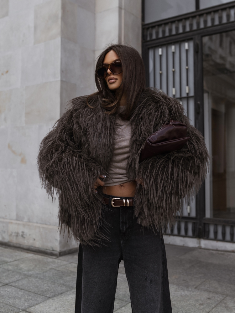 Futrzasty płaszcz Amadeus to stylowy i funkcjonalny element garderoby. Jego oversize'owy krój zapewnia modny, luźny wygląd. Podszewka zapewnia dodatkowy komfort. To doskonały wybór na dopełnienie casualowych i eleganckich stylizacji. Polski producent Cocomore.