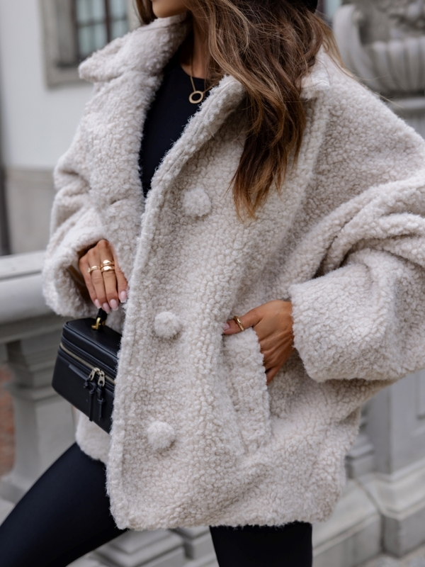 Wyjątkowy, płaszcz Corby o oversizeowym kroju. Wykonany z ultra miłego kożucha, który zapewni ciepło w nawet najbardziej chłodne dni. Dodatkowym atutem jest szeroki kołnierzyk oraz podszewka, która zapewni komfort noszenia. Zapinany na guziki. Z przodu umiejscowione są pojemnne kieszenie. Polski producent Cocomore.