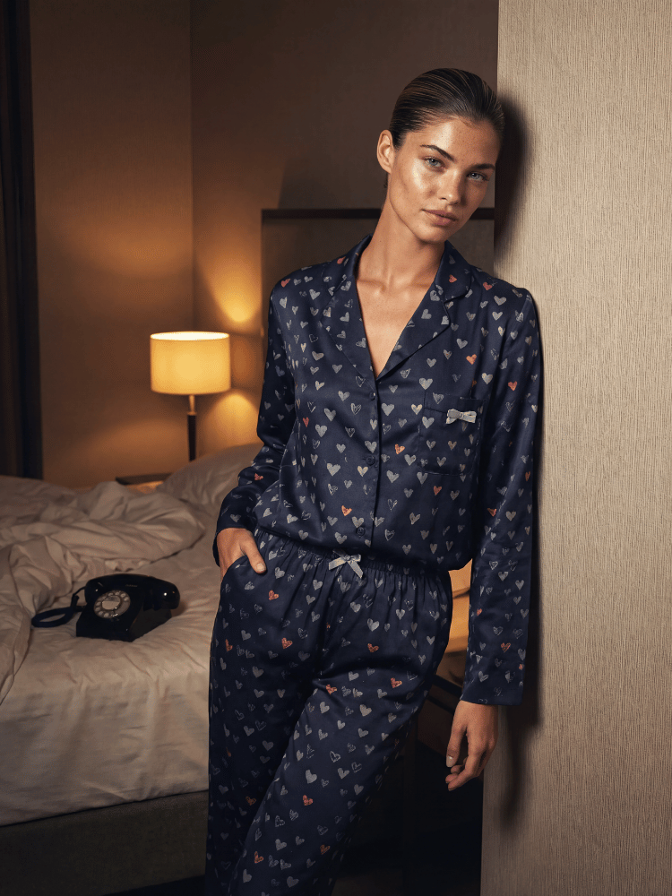 Cudna piżama Heart, wykonana z materiału w przepiękne, kontrastujące wzory, to świetna propozycja na świąteczny prezent. Góra składa się z zapinanej na guziki koszuli. Na boku znajduje się kieszeń z delikatną kokardą. Dół stanowią luźne spodnie ze ściągaczem u góry. Made in Poland. Producent Cocomore.
