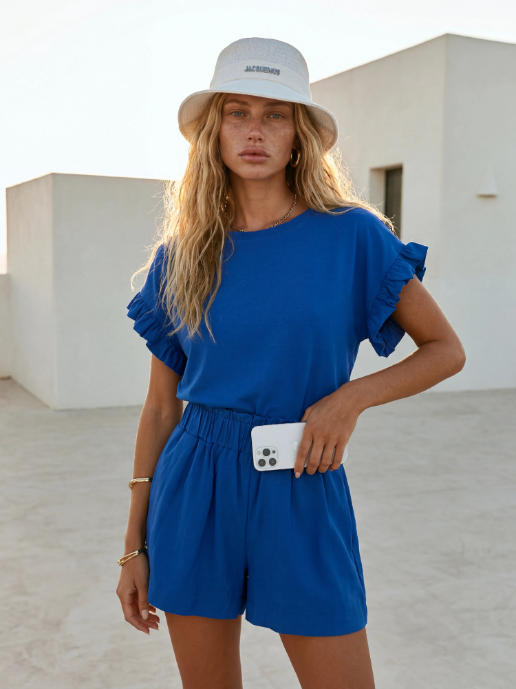 Fantastyczne bawełniane spodenki Benjamin z dodatkiem elastanu to pozycja obowiązkowa w każdej szafie. Wysoki stan oraz gumka w talii, pięknie uwydatnią sylwetkę. Dodatkowo, po bokach znajdują się pojemne kieszenie. Wystylizuj z bluzką o tej samej nazwie. Polski producent Cocomore. Prezentacja produktu wykorzystuje wizualizacje AI.
