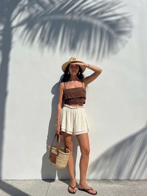 Rozkloszowane spodenki Brendan to model, który znakomicie sprawdzi się w duecie z t-shirtem o tej samej nazwie. Wysoki stan oraz gumka w talii podkreślą sylwetkę. Polski producent Cocomore. Prezentacja produktu wykorzystuje wizualizacje AI.