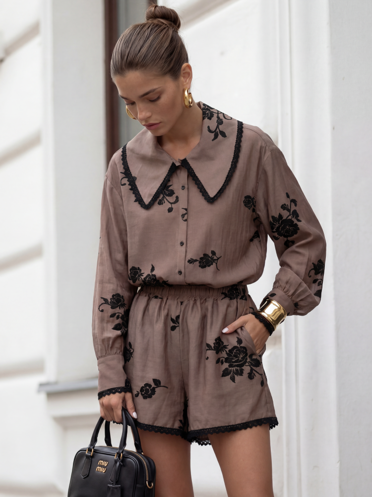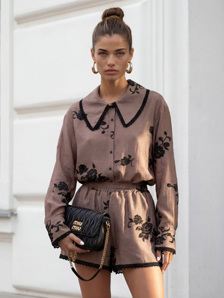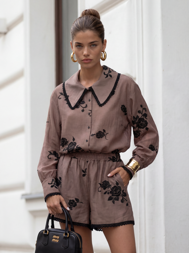 Urocze spodenki Hadleigh, wykonane z wysokiej jakości materiału, który zapewni komfort noszenia. Wysoki stan dopełniony został szerokim ściągaczem w talii, która uwydatni sylwetkę. Całość urozmaicają niepowtarzalne, haftowane detale oraz koronkowe lampasy zdobiące nogawki. Po bokach znajdują się praktyczne kieszenie. Wystylizuj z koszulą o tej samej nazwie. Polski producent Cocomore. Prezentacja produktu wykorzystuje wizualizacje AI.