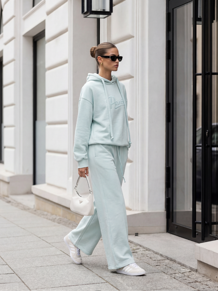 Szerokie spodnie Abner, wykonane z wysokiej jakości materiału. Wysoki stan oraz ściągacz w talii, dopełniony wiązaniem zapewnią idealne dopasowanie do sylwetki. Po bokach umiejscowione są praktyczne kieszenie. Dodatkowym atutem jest podłużne przeszycie z przodu nogawek. Wystylizuj z bluzą o tej samej nazwie. Polski producent Cocomore.  Prezentacja produktu wykorzystuje wizualizacje AI.