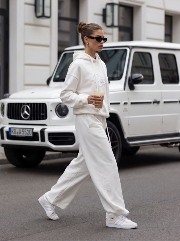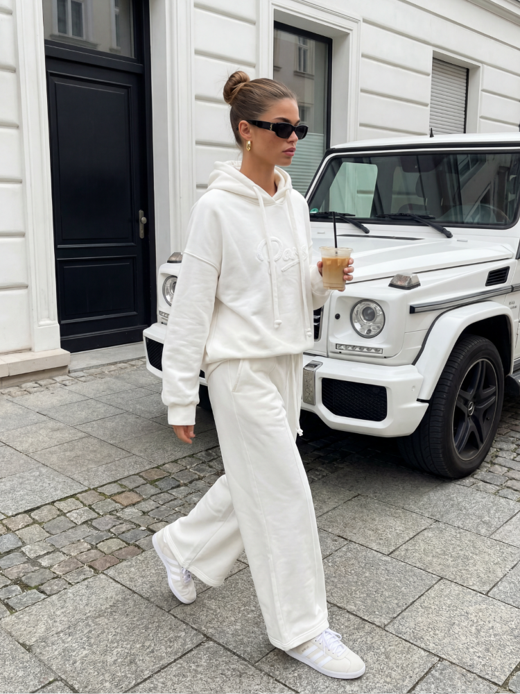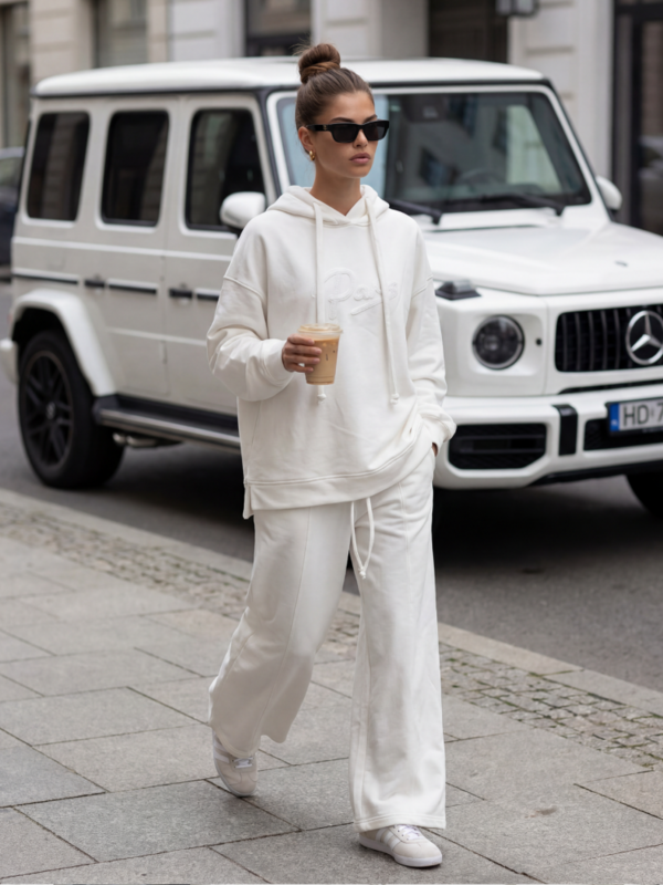 Szerokie spodnie Abner, wykonane z wysokiej jakości materiału. Wysoki stan oraz ściągacz w talii, dopełniony wiązaniem zapewnią idealne dopasowanie do sylwetki. Po bokach umiejscowione są praktyczne kieszenie. Dodatkowym atutem jest podłużne przeszycie z przodu nogawek. Wystylizuj z bluzą o tej samej nazwie. Polski producent Cocomore.  Prezentacja produktu wykorzystuje wizualizacje AI.