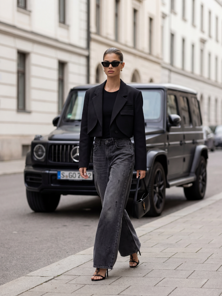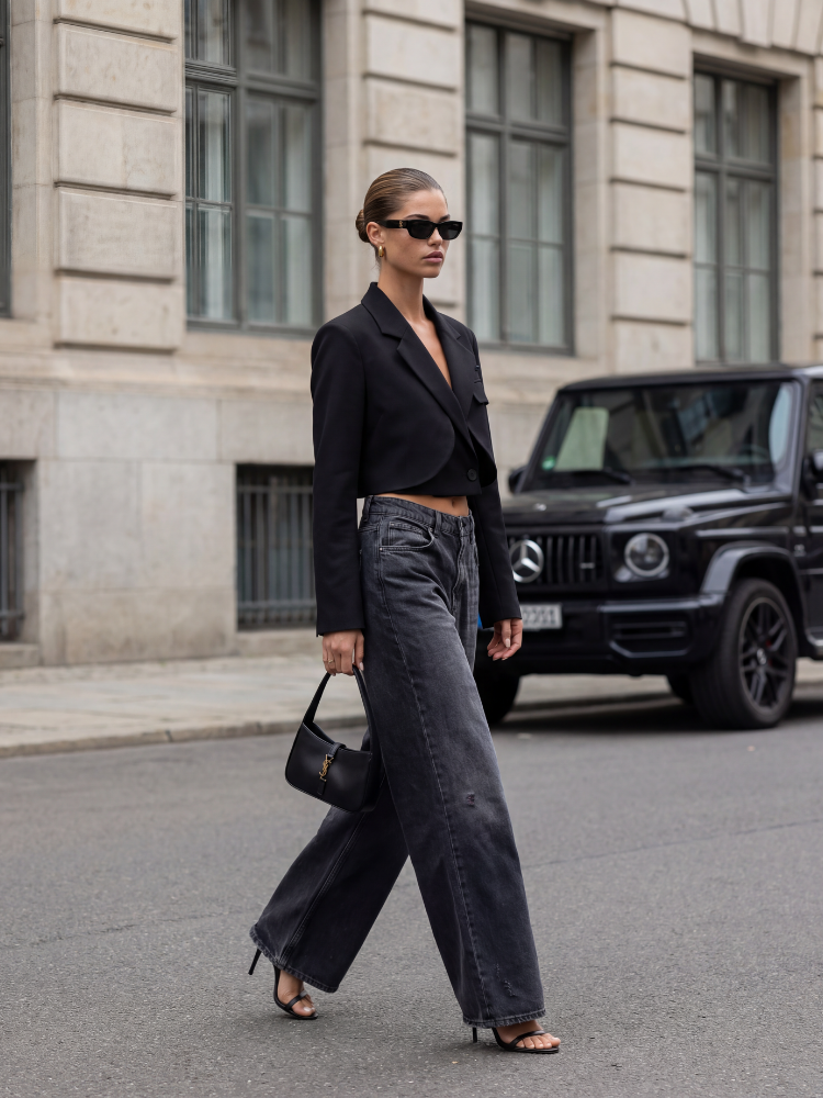 Jeansowe spodnie Boris o kroju super wide leg, to najmodniejsza propozycja w tym sezonie. Zapinane na praktyczny ekspres i guzik. Posiadają liczne kieszenie, a w talii szlufki. Wysoki stan znakomicie podkreśli talię. Całość dopełniają subtelne przetarcia oraz postrzępione nogawki. Producent Cocomore. Prezentacja produktu wykorzystuje wizualizacje AI.