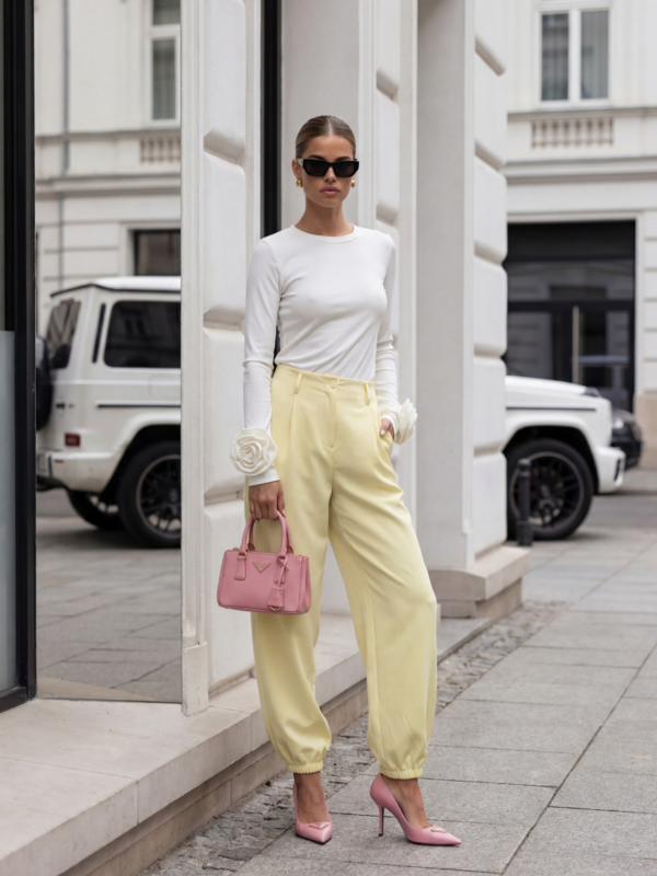 Spodnie Grandis to model, który znakomicie sprawdzi się w każdej stylizacji. Szerokie nogawki równoważy ściągacz na dole. Wysoki stan wyeksponuje talię. Zapinane na ekspres i guzik. Dodatkowo w talii znajdują się szlufki. Idealne dopasowanie zagwarantuje ściągacz z tyłu. Po bokach znajdują się pojemne kieszenie.