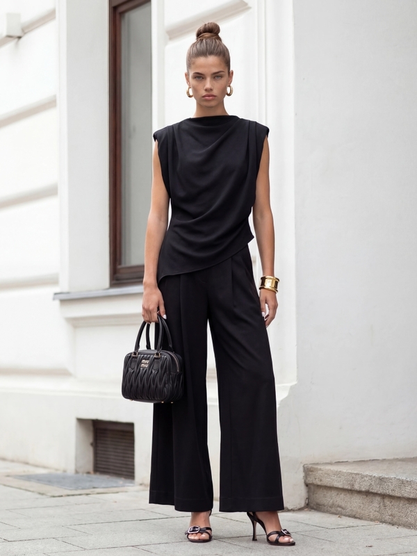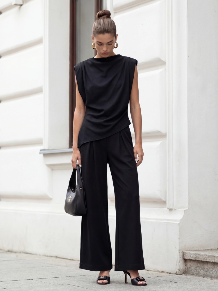 Spodnie Rodney to modne i wygodne spodnie z wysokim stanem i rozszerzanymi nogawkami ku dołowi. Wykonane z wysokiej jakości materiału. Dzięki ściągaczowi w tali świetnie podkreślą sylwetkę. Po bokach umiejscowione są kieszenie. Doskonały wybór na różne okazje, łączący styl z wygodą. Skompletuj z bluzką o tej samej nazwie. Polski producent Cocomore. Prezentacja produktu wykorzystuje wizualizacje AI.